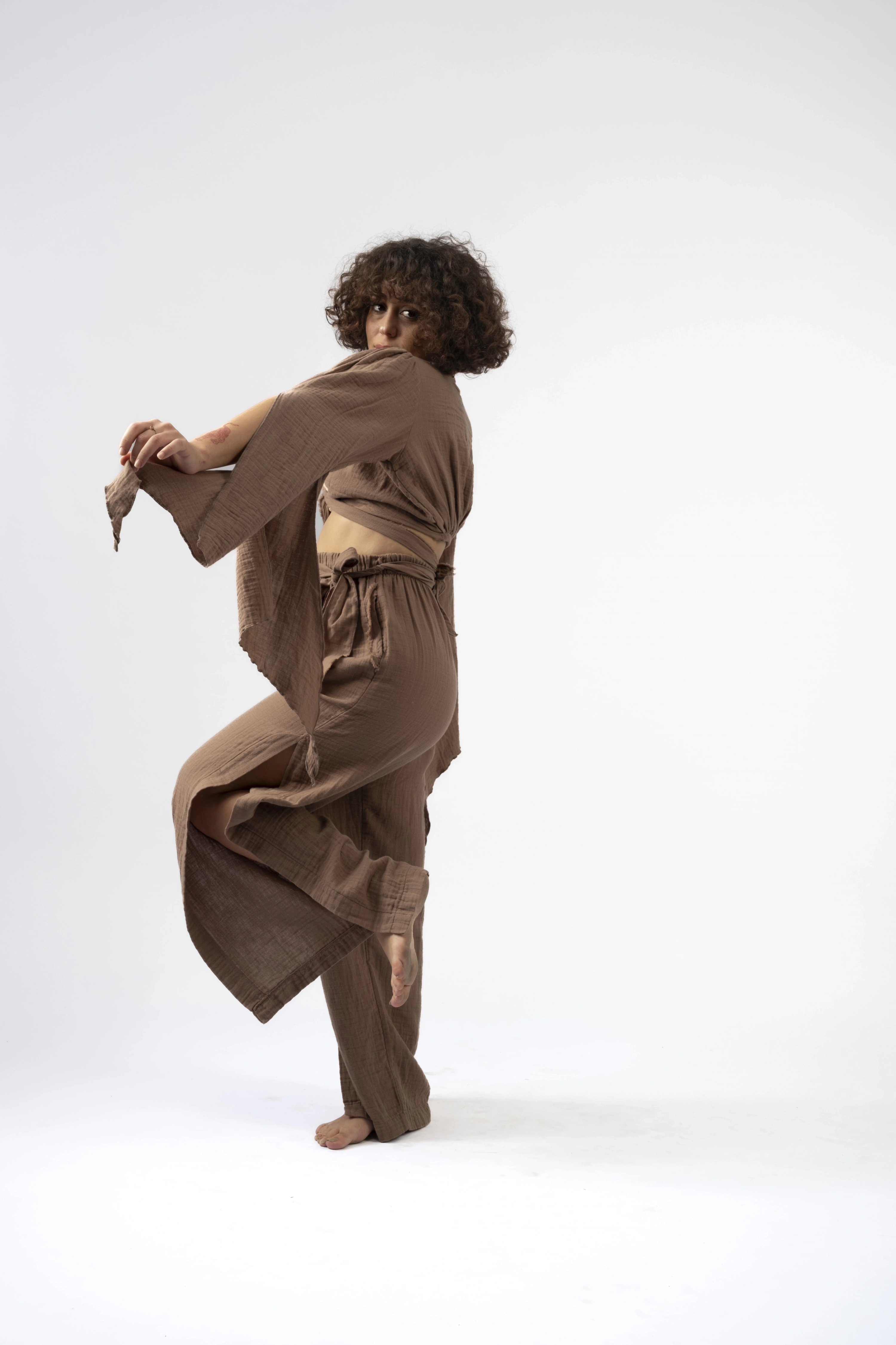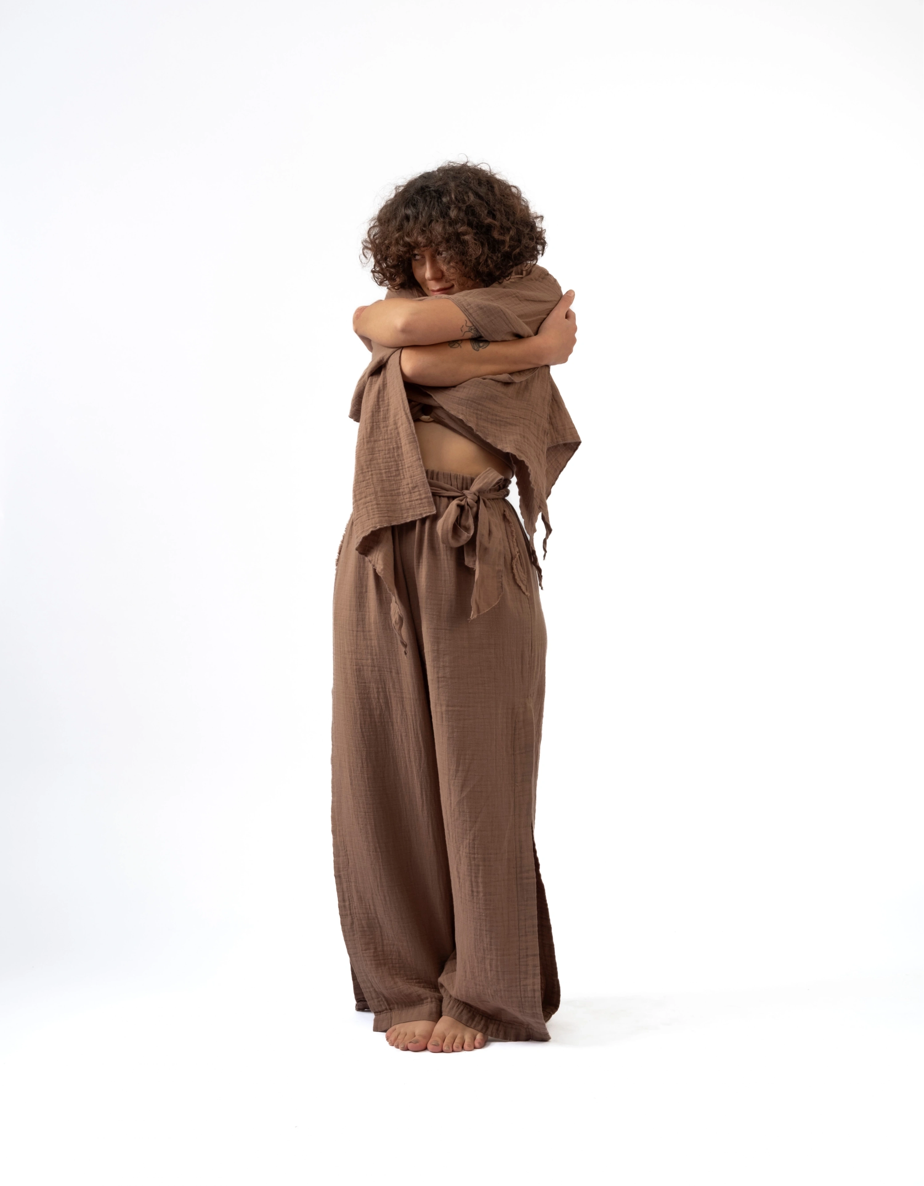 Ateiler Chaputs %100 Pamuk Müslin Kahverengi Yırtmaçlı Pantolon One-Size