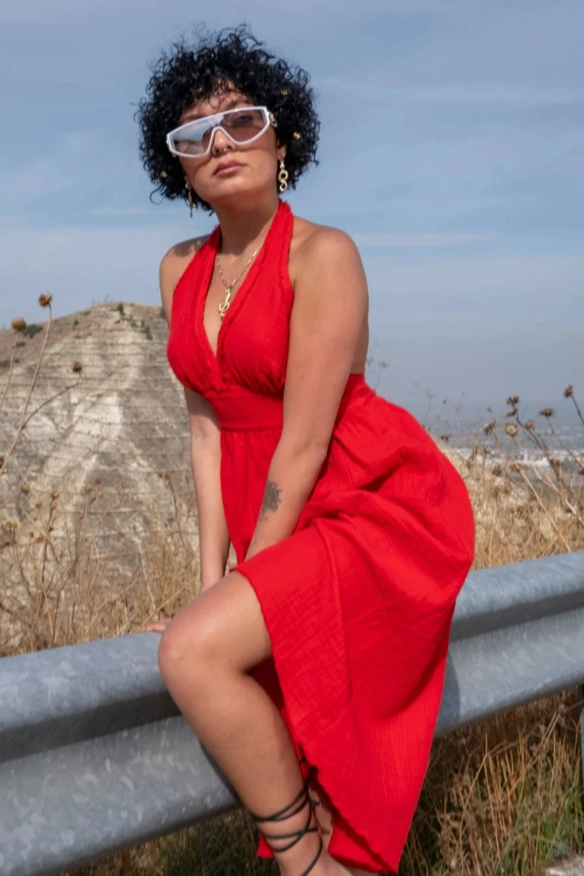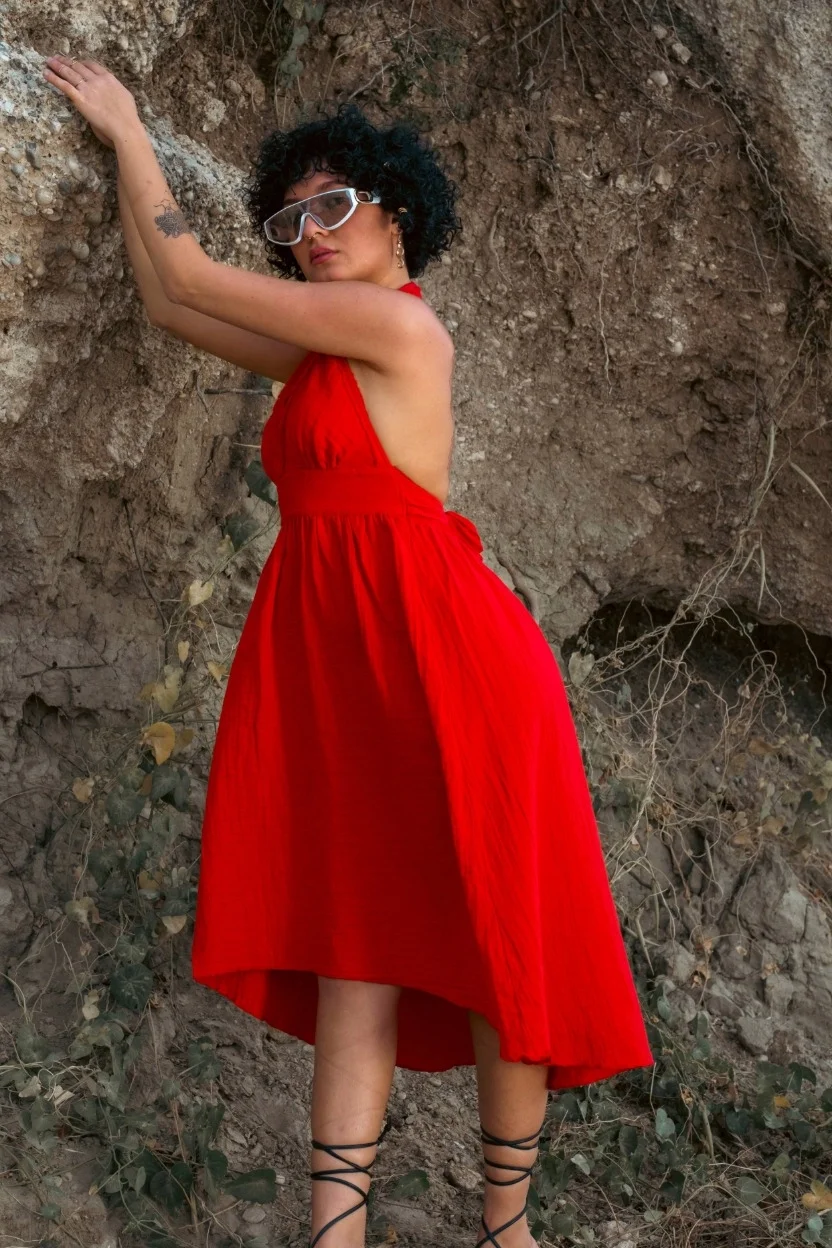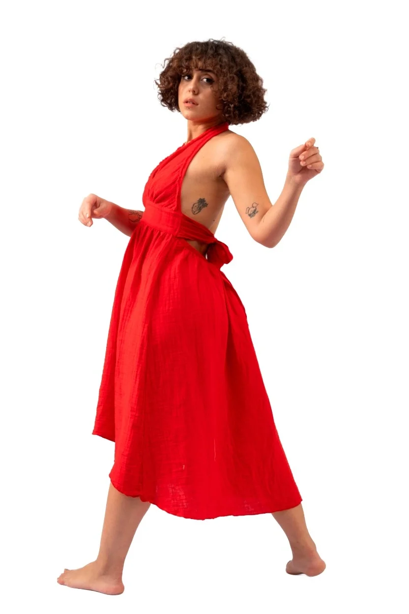Atelier Chaputs 100% Cotton Muslin Hera Red Dress One-Size