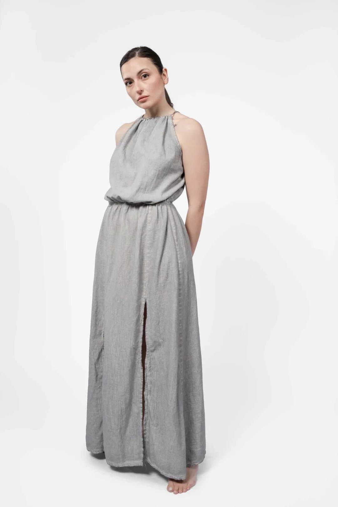 Flora Grey Linen Dress