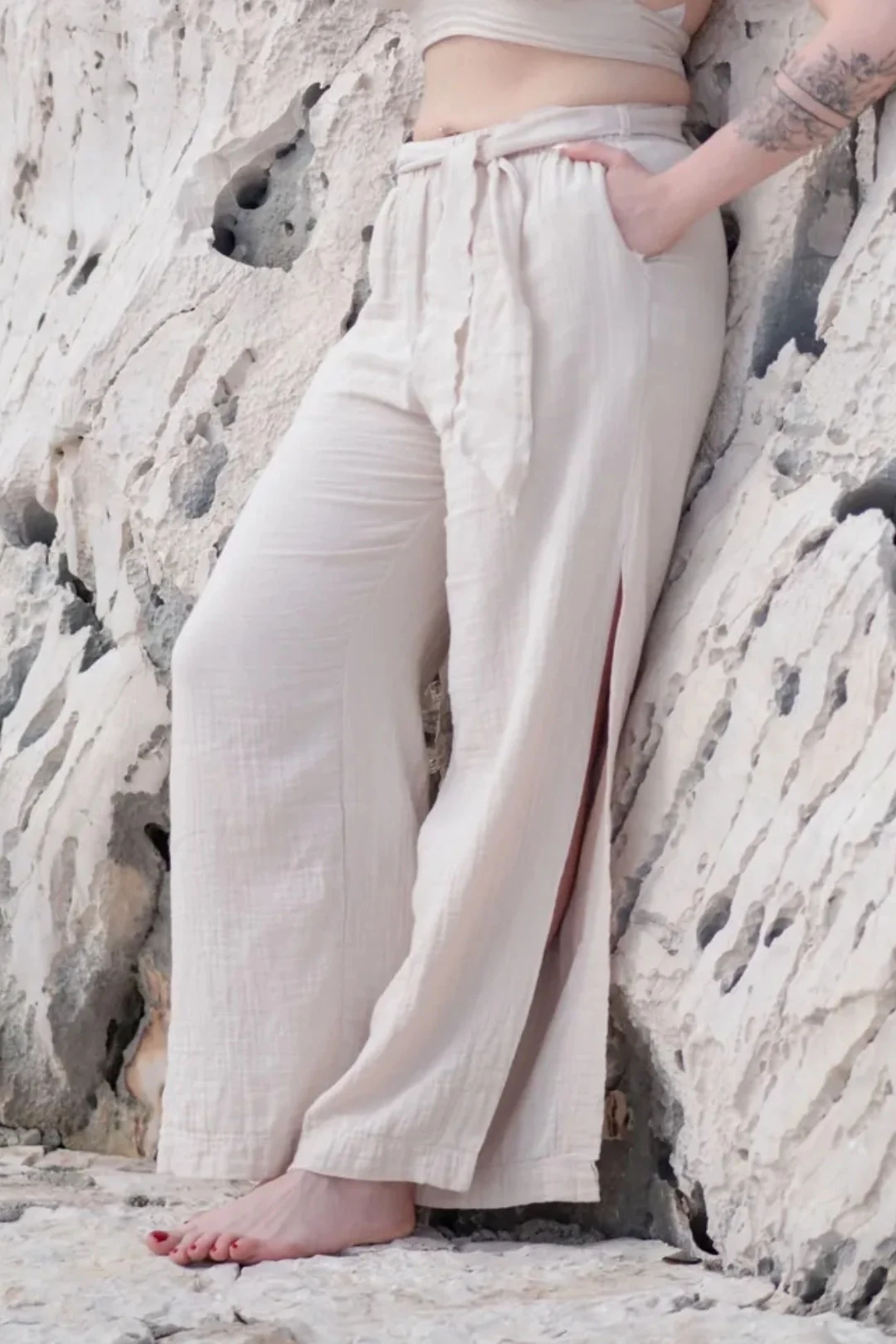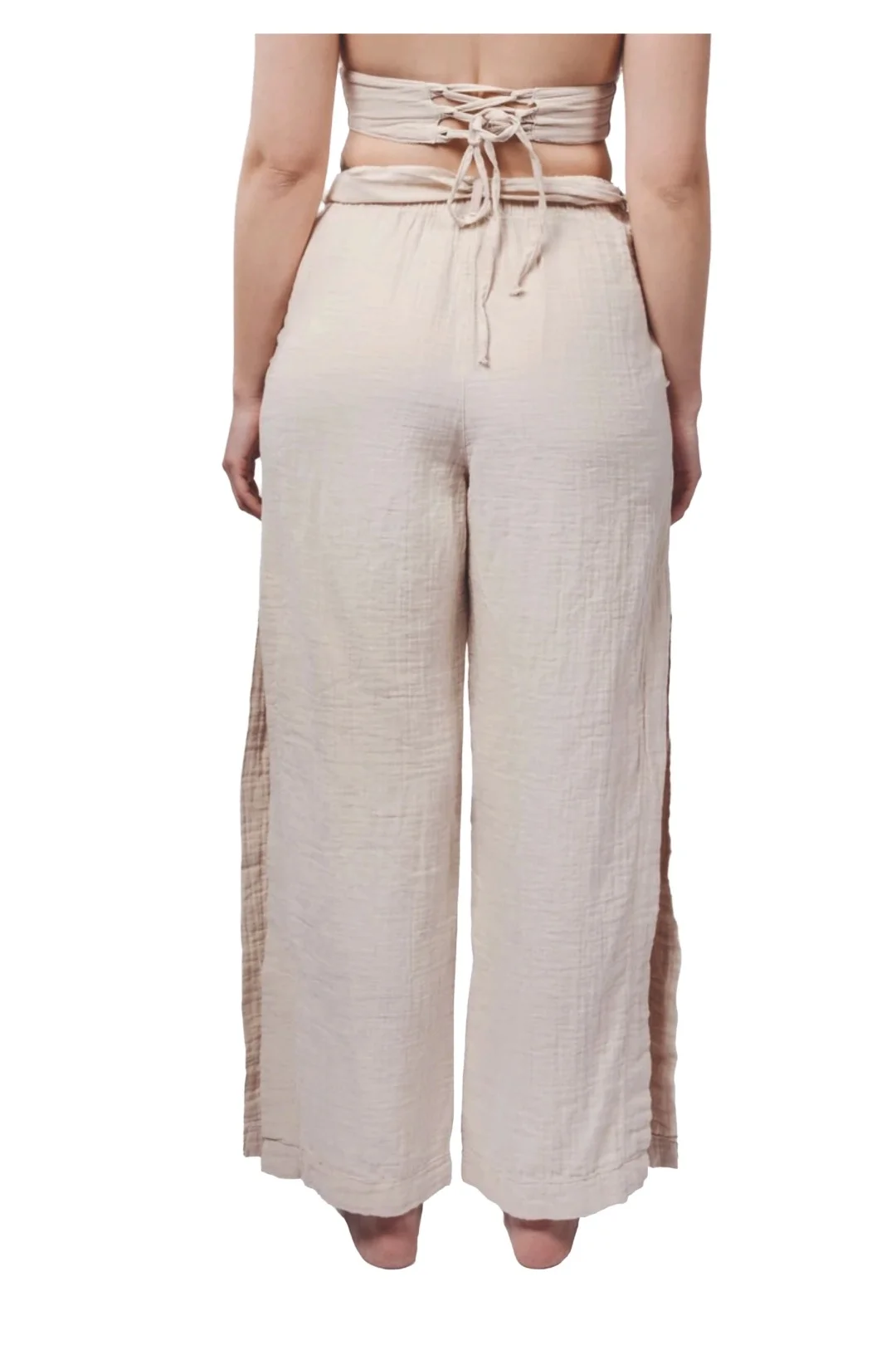 Designed for modern comfort and effortless elegance, these belted muslin trousers are crafted to meet the needs of boutique hotels, concept stores, and lifestyle brands seeking premium Turkish textiles. The relaxed silhouette features a flexible elastic waistband and a matching fabric belt, ensuring a comfortable and adjustable fit for a wide range of body types. Functional side pockets and subtle side slits add both practicality and a contemporary touch, making these trousers ideal for versatile, everyday wear.