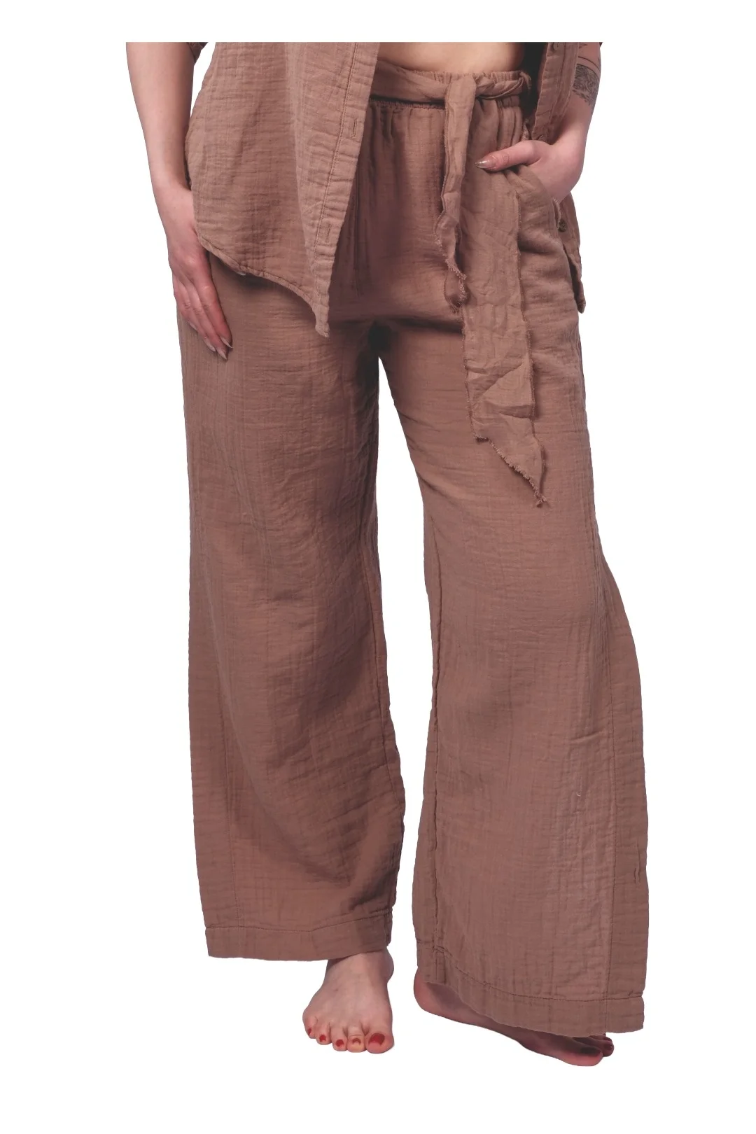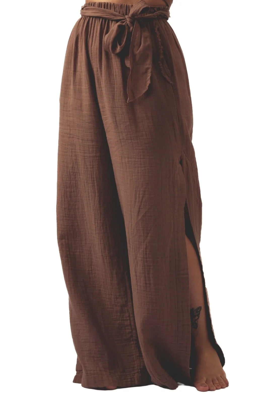 Brown Muslin Slit Trouser