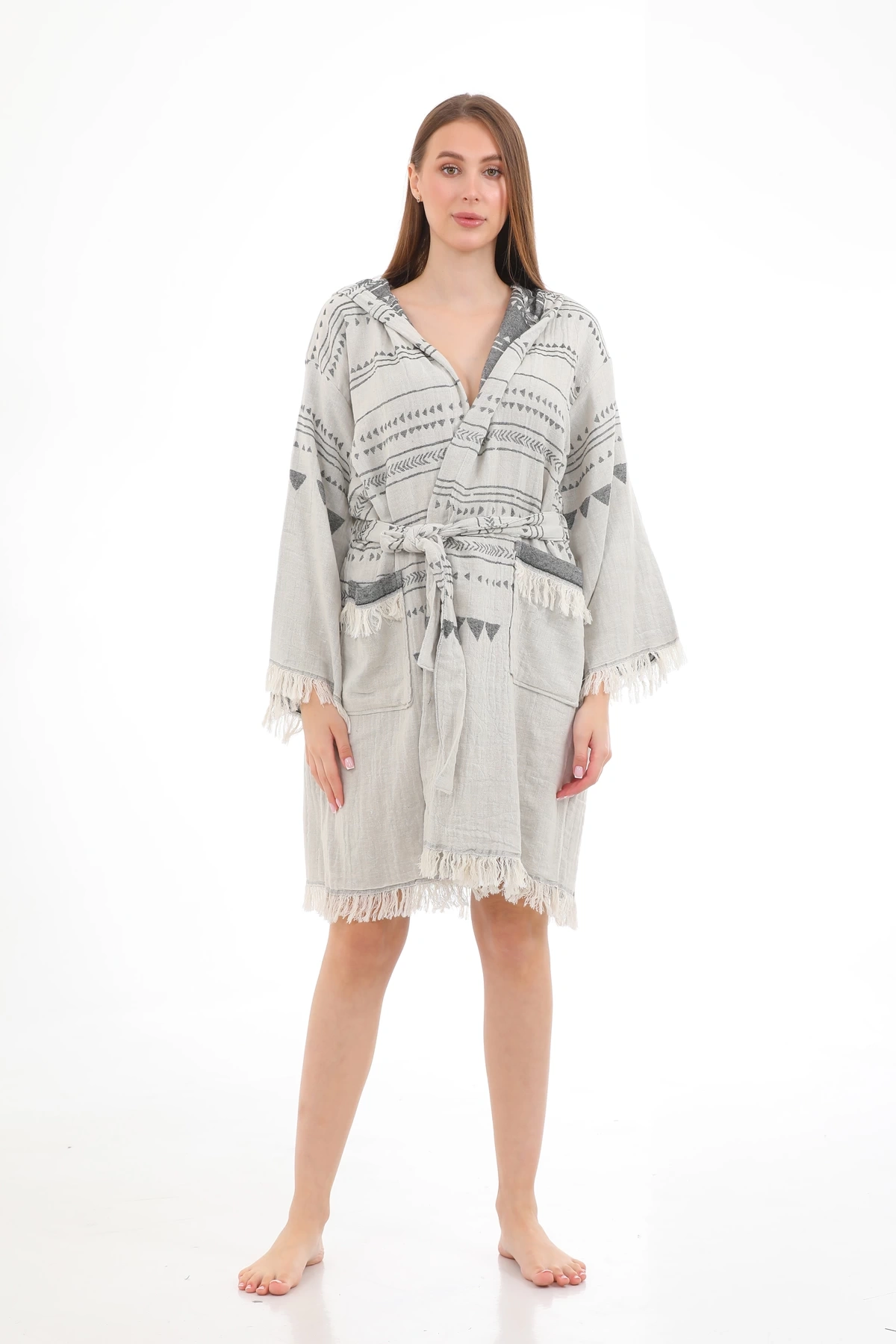Aspendos Beige & Black Bathrobe