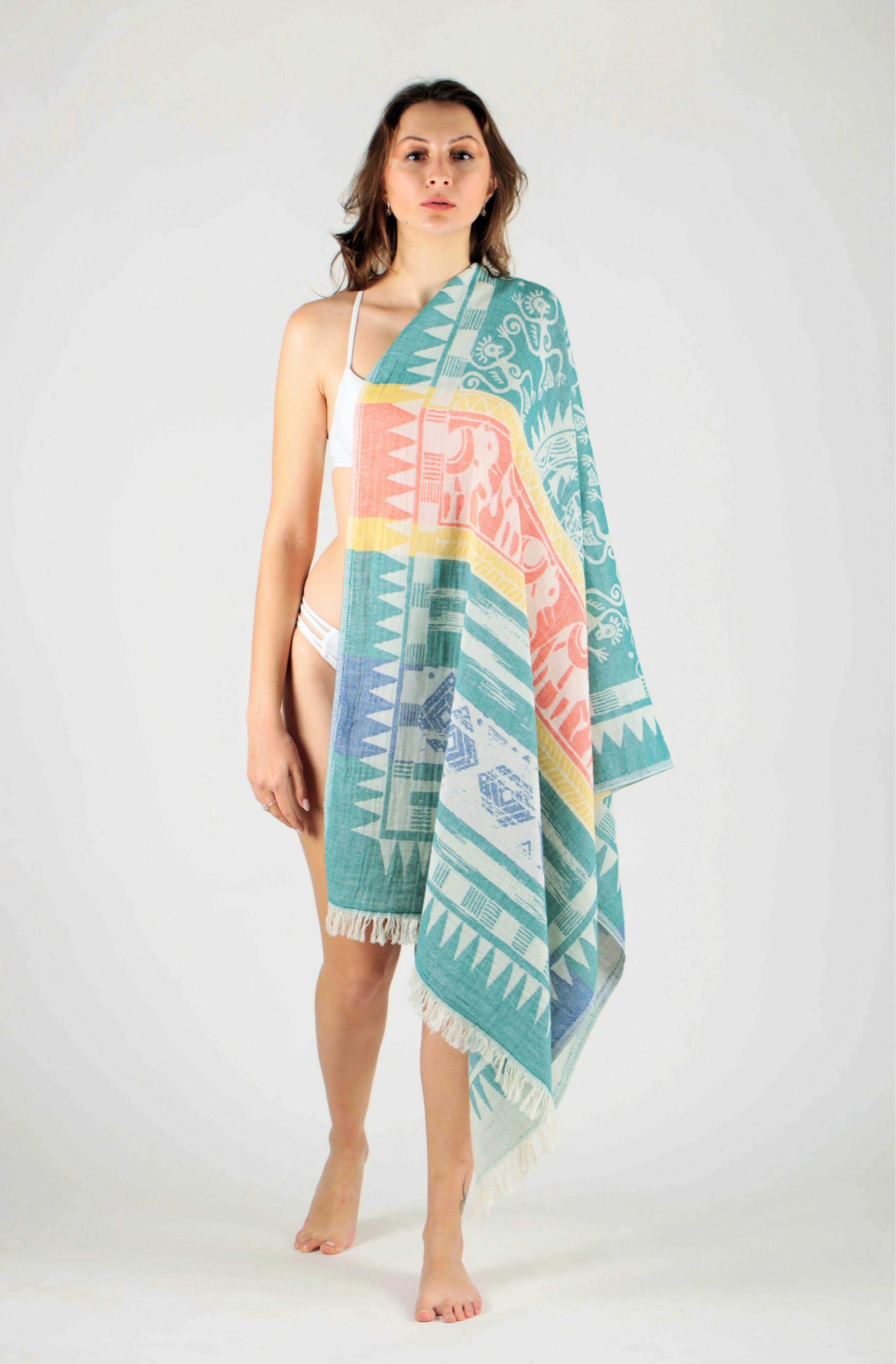 All Chaputs peshtemals signature design elements to striking with colors that will captivate.Designed and and produced in Turkey. All Chaputs peshtemals are made by Organic cotton and have Oekotex-100 certificated.Material : 100% Turkish CottonSize : 90 x 175 cm / 35,43 x 68,89 inchWeight : 320 gr / 0,70 ibs