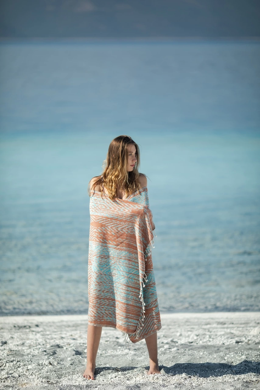 All Chaputs peshtemals signature design elements to striking with colors that will captivate.Designed and and produced in Turkey. All Chaputs peshtemals are made by Organic cotton and have Oekotex-100 certificated.Material : 100% Turkish CottonSize : 90 x 175 cm / 35,43 x 68,89 inchWeight : 400 gr / 0,88 ibs