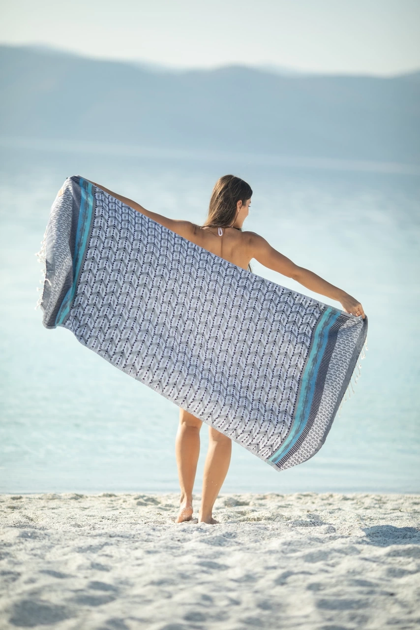 All Chaputs peshtemals signature design elements to striking with colors that will captivate.Designed and and produced in Turkey. All Chaputs peshtemals are made by Organic cotton and have Oekotex-100 certificated.Material : 100% Turkish CottonSize : 90 x 175 cm / 35,43 x 68,89 inchWeight : 385 gr / 0,85 ibs