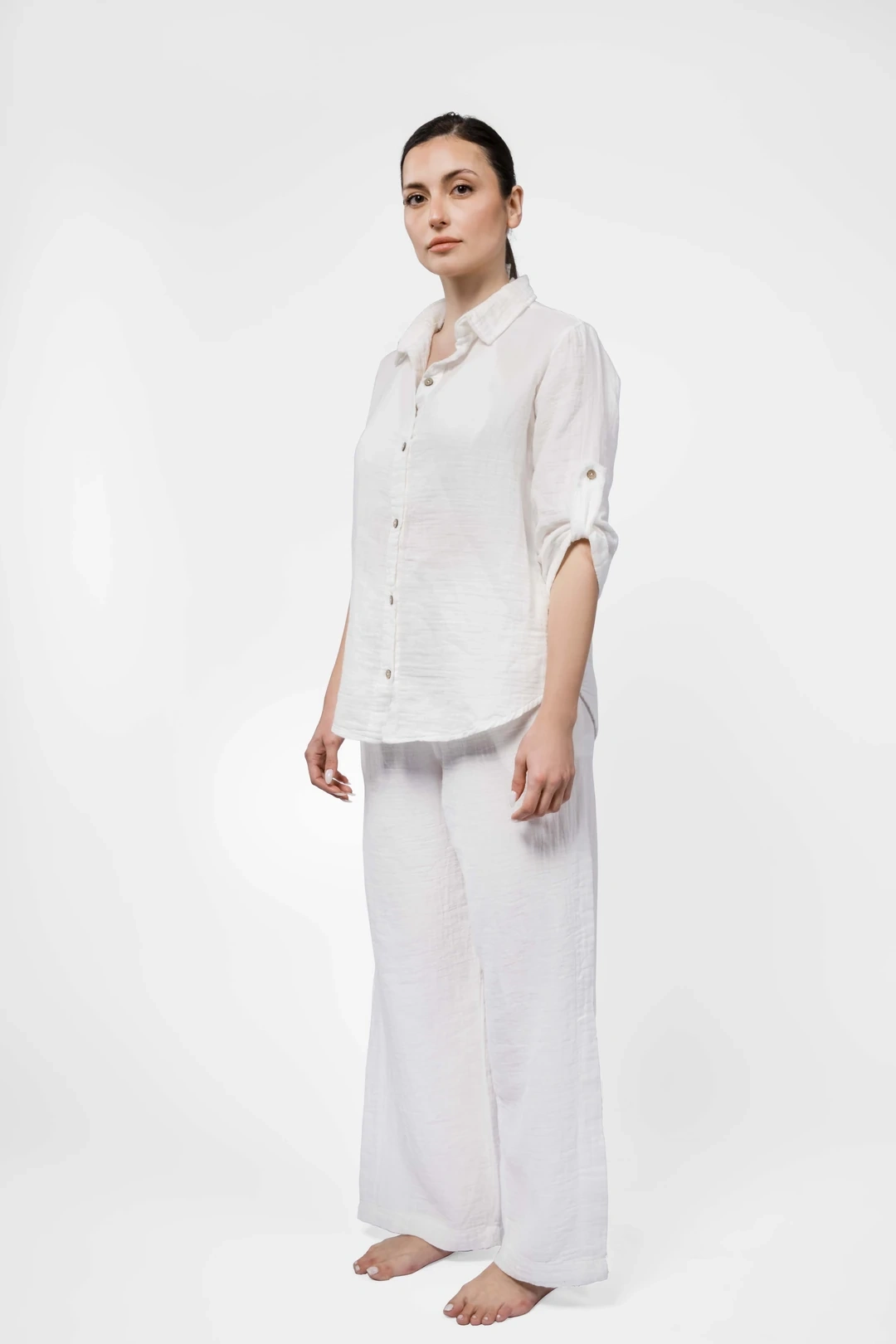 Zarifçe kıvrılmış manşetler, rafine ve çağdaş bir dokunuş için