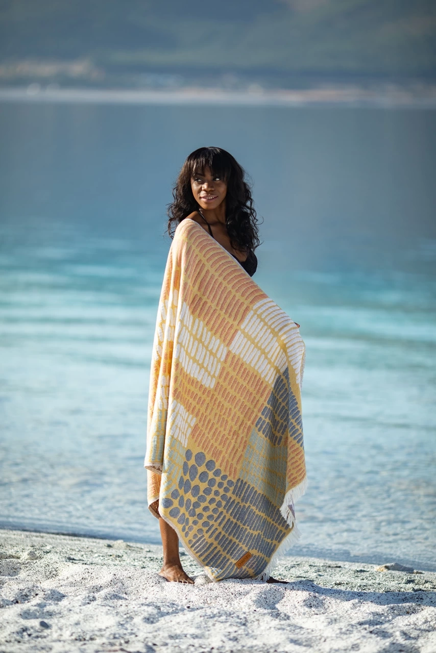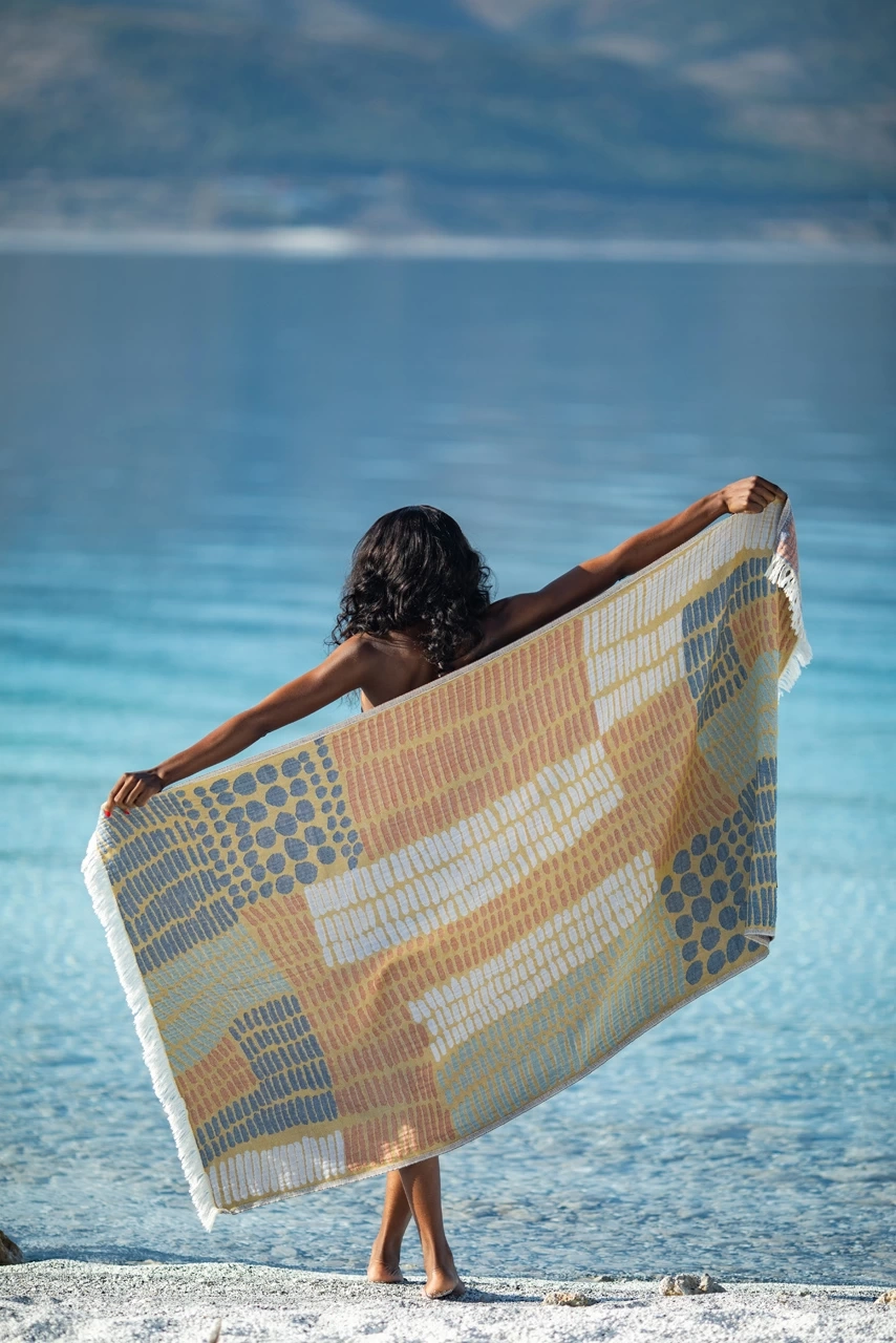 All Chaputs peshtemals signature design elements to striking with colors that will captivate.Designed and and produced in Turkey. All Chaputs peshtemals are made by Organic cotton and have Oekotex-100 certificated.Material : 100% Turkish CottonSize : 90 x 175 cm / 35,43 x 68,89 inchWeight : 450 gr / 0,99 ibs