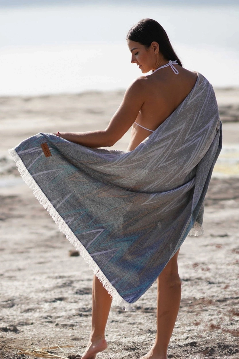 All Chaputs peshtemals signature design elements to be striking with colors that will captivate. Designed and produced in Turkey. All Chaputs peshtemals are made of Organic cotton and have Oekotex-100 certification. Material: 100% Turkish Cotton Size: 90 x 175 cm / 35.43 x 68.89 inches Weight: 445 gr / 0.98 lbs