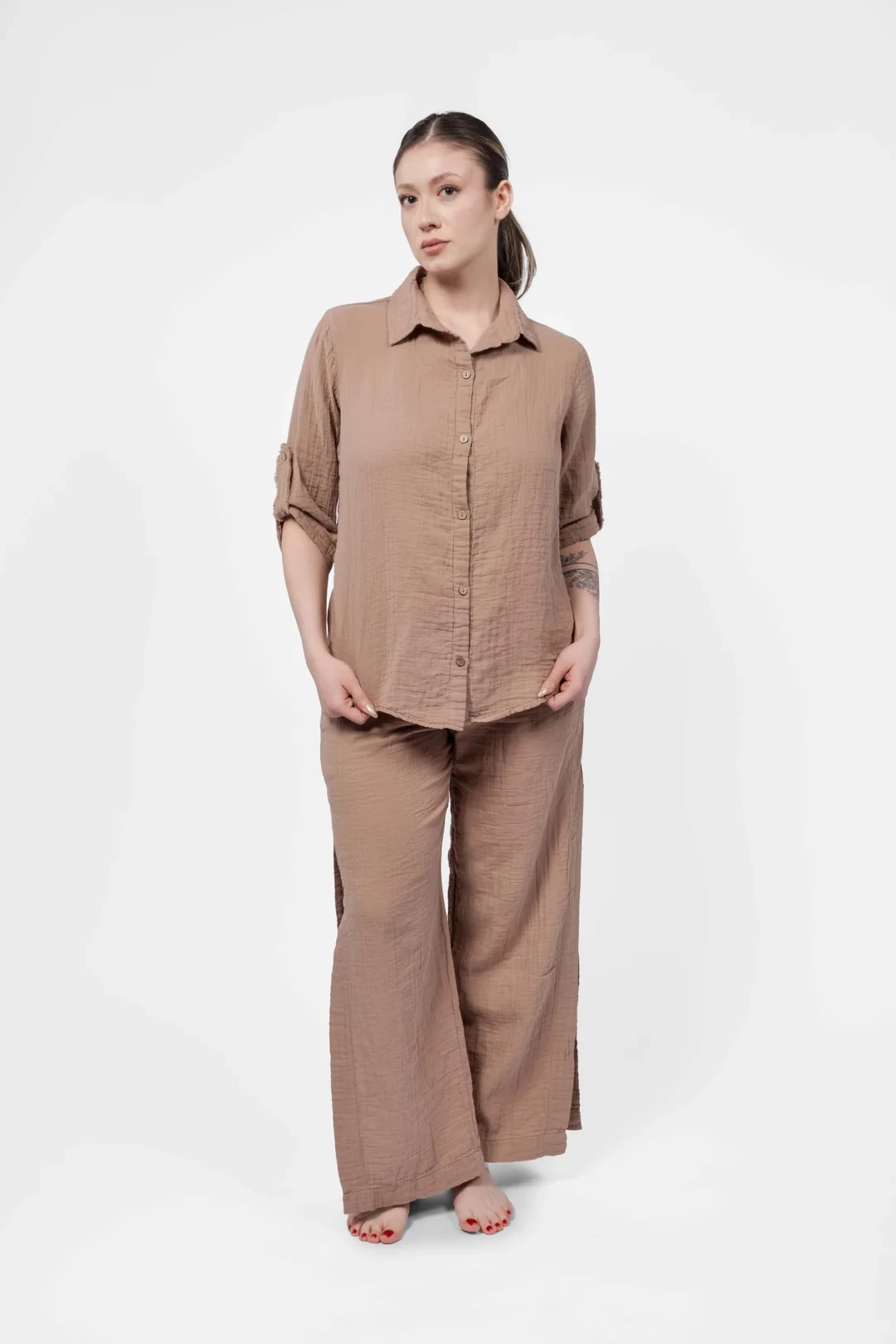 Atelier Chaputs 100% Cotton Muslin Ilayda Coffee Blouse One-Size