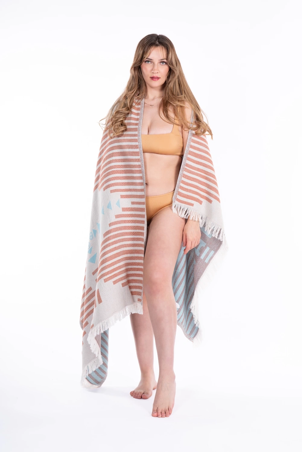 All Chaputs peshtemals signature design elements to striking with colors that will captivate. Designed and produced in Turkey. All Chaputs peshtemals are made from Organic cotton and have Oeko-Tex 100 certification. Material: 100% Turkish Cotton Size: 90 x 175 cm / 35.43 x 68.89 inch Weight: 405 gr