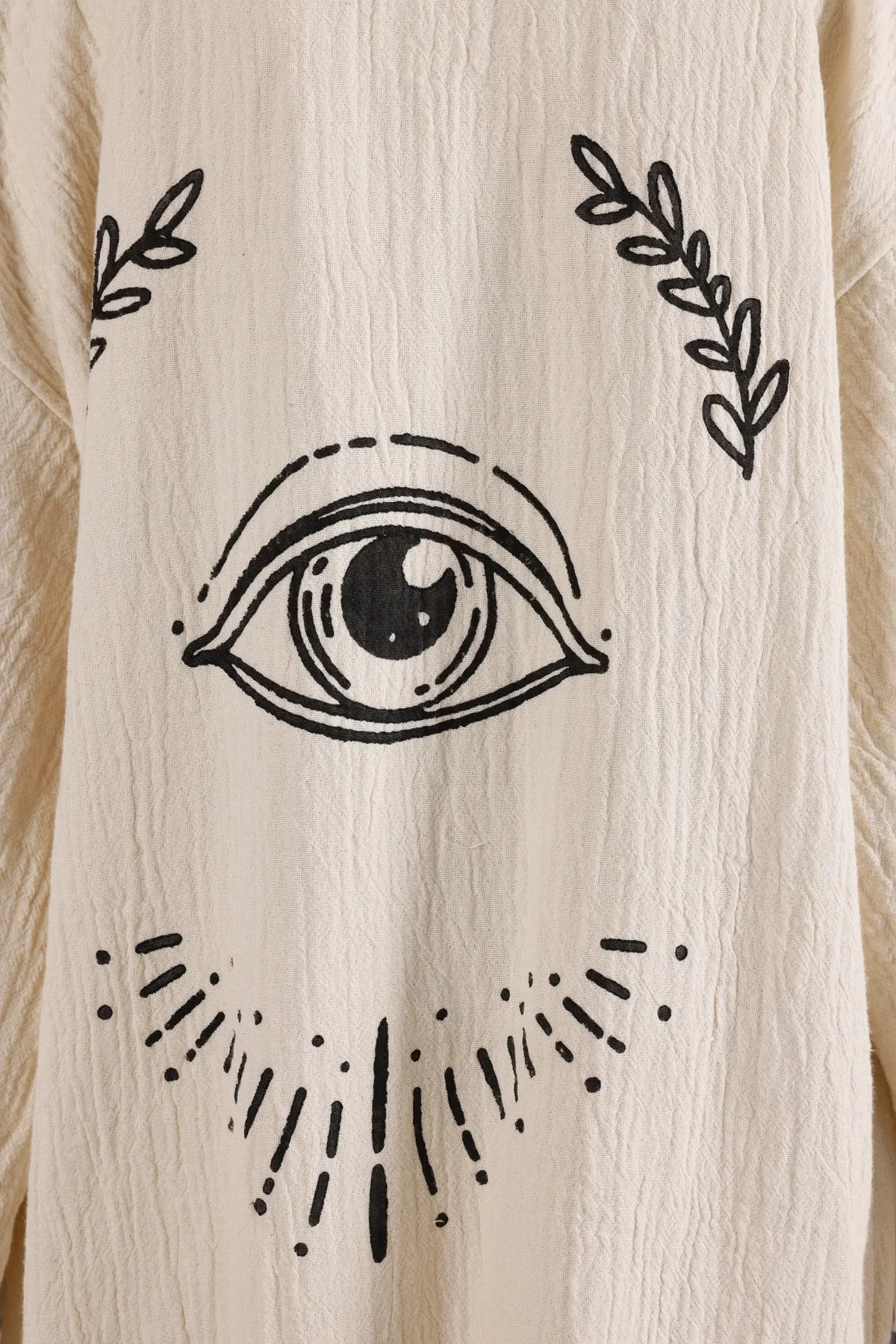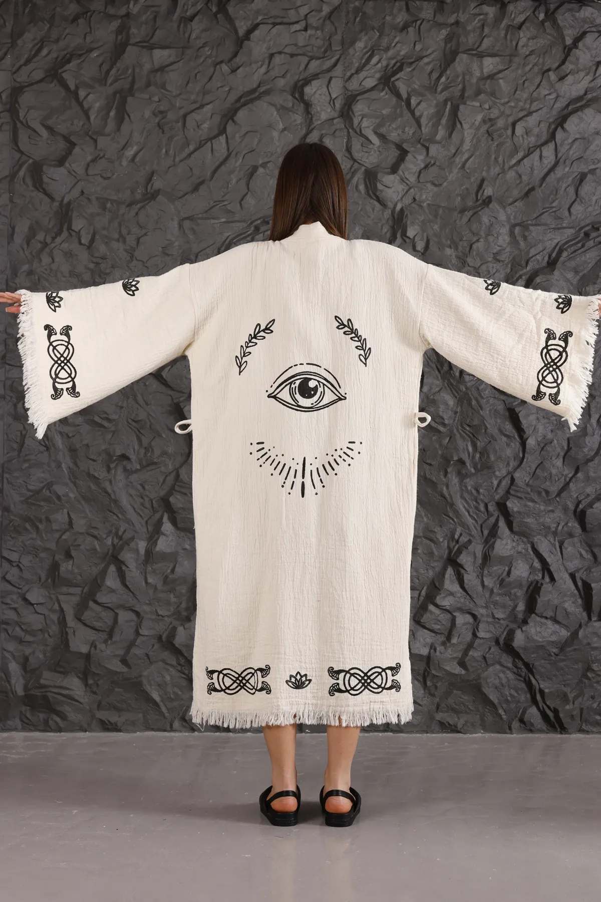 Nature-Inspired Comfort: 100% Cotton Bathrobe with wodden Print