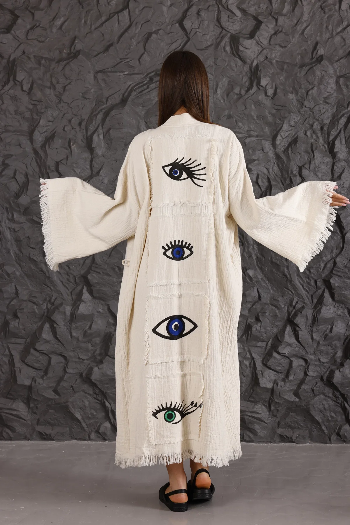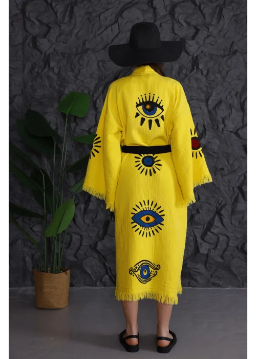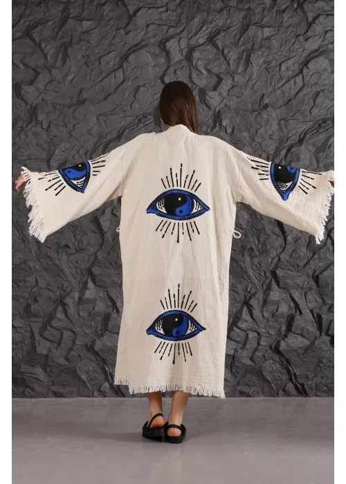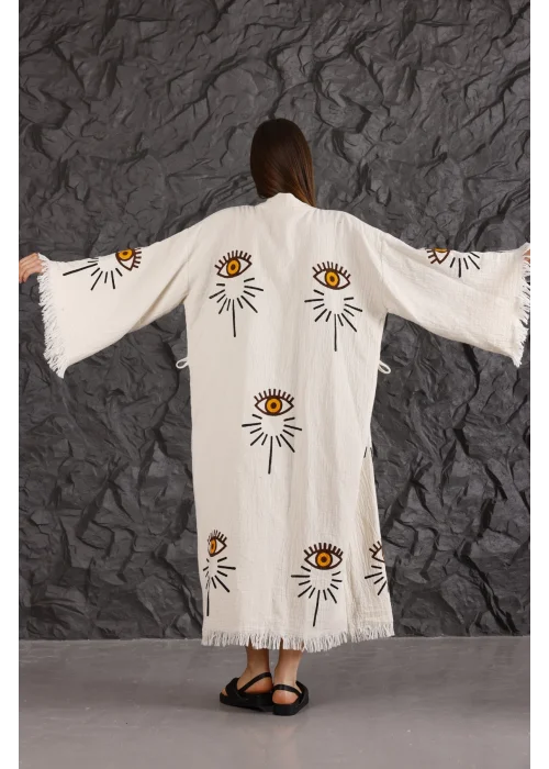Eye Wooden Printed Patched Kaftan