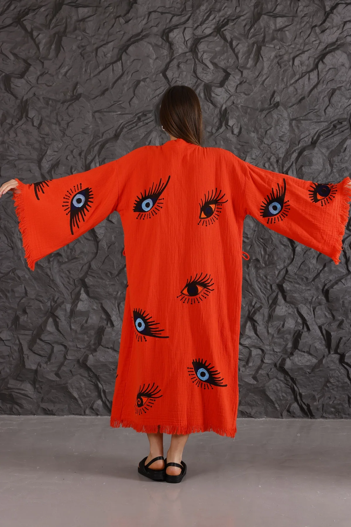 Eye Wooden Printed Red Kaftan