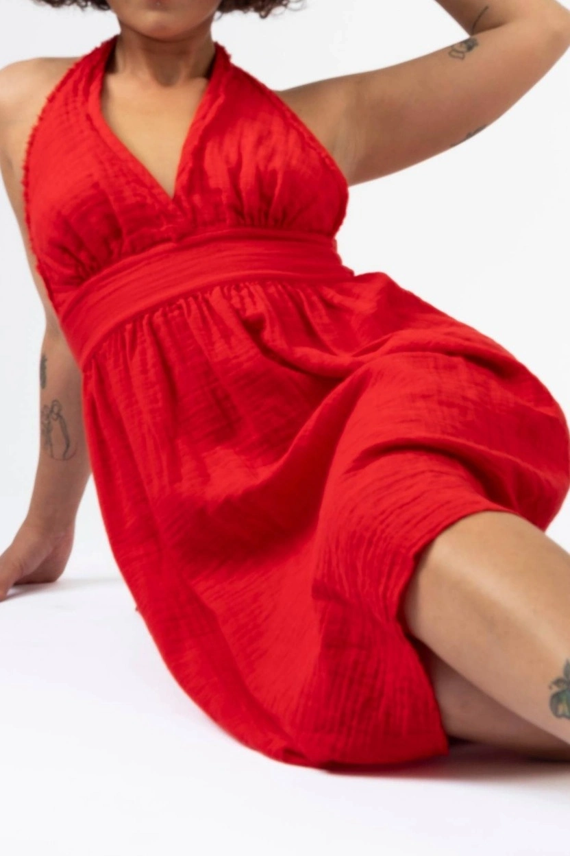 • Modern Aesthetic: Features a stylish halter neck that ties at the neck and waist, creating a flattering, secure fit with a bold backless finish.