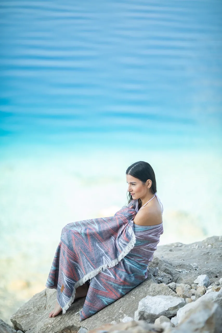 All Chaputs peshtemals signature design elements to striking with colors that will captivate.Designed and and produced in Turkey. All Chaputs peshtemals  are made by Organic cotton and have Oekotex-100 certificated.Material : 100% Turkish CottonSize : 90 x 175 cm / 35,43 x 68,89 inchWeight : 445 gr / 0,98 ibs