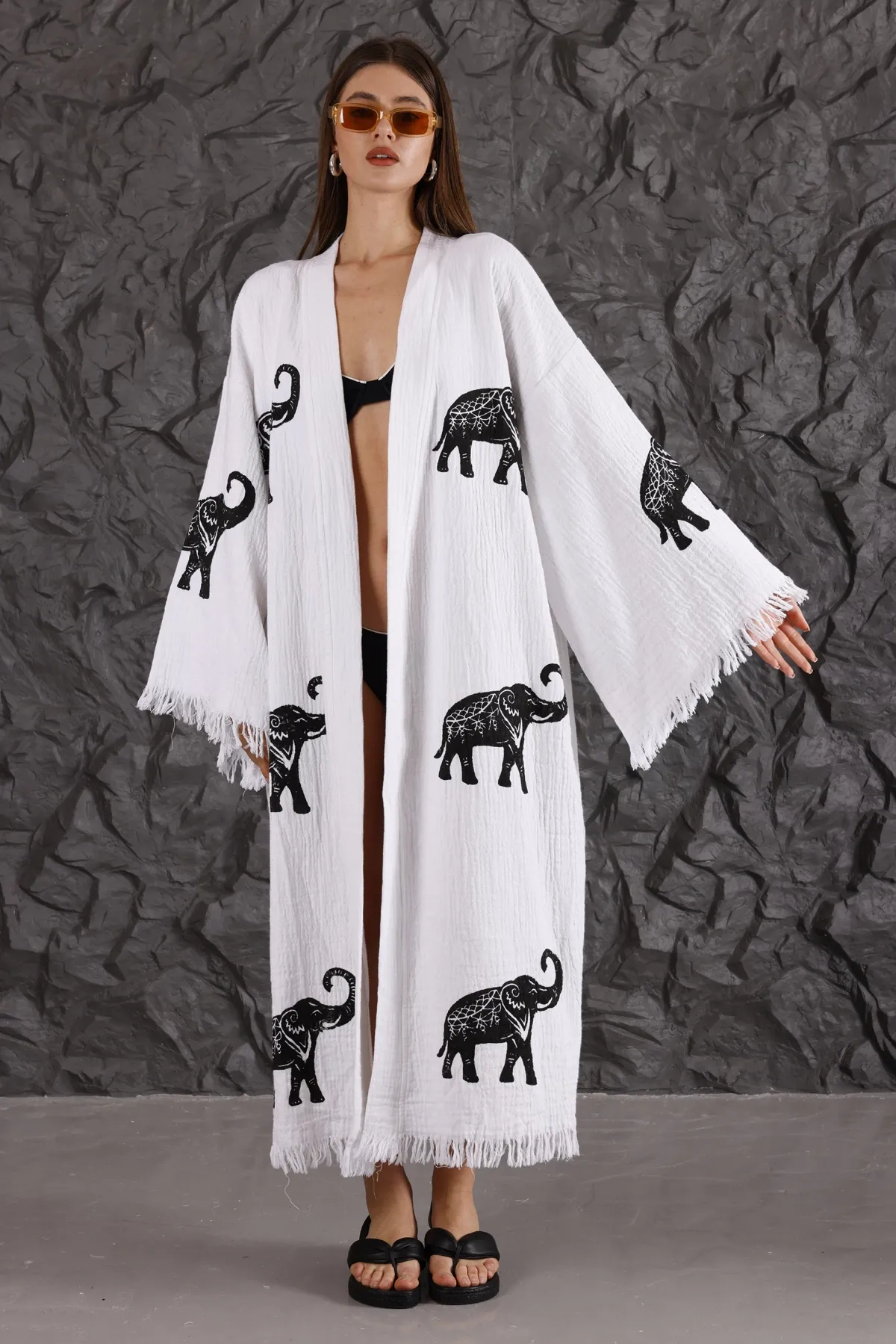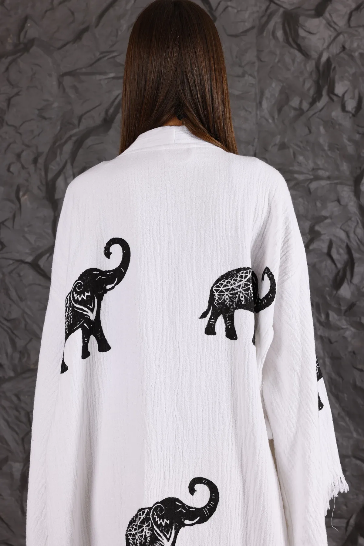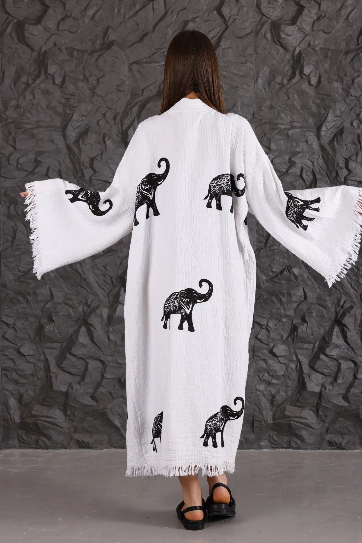 Nature-Inspired Comfort: 100% Cotton Bathrobe with wodden Print