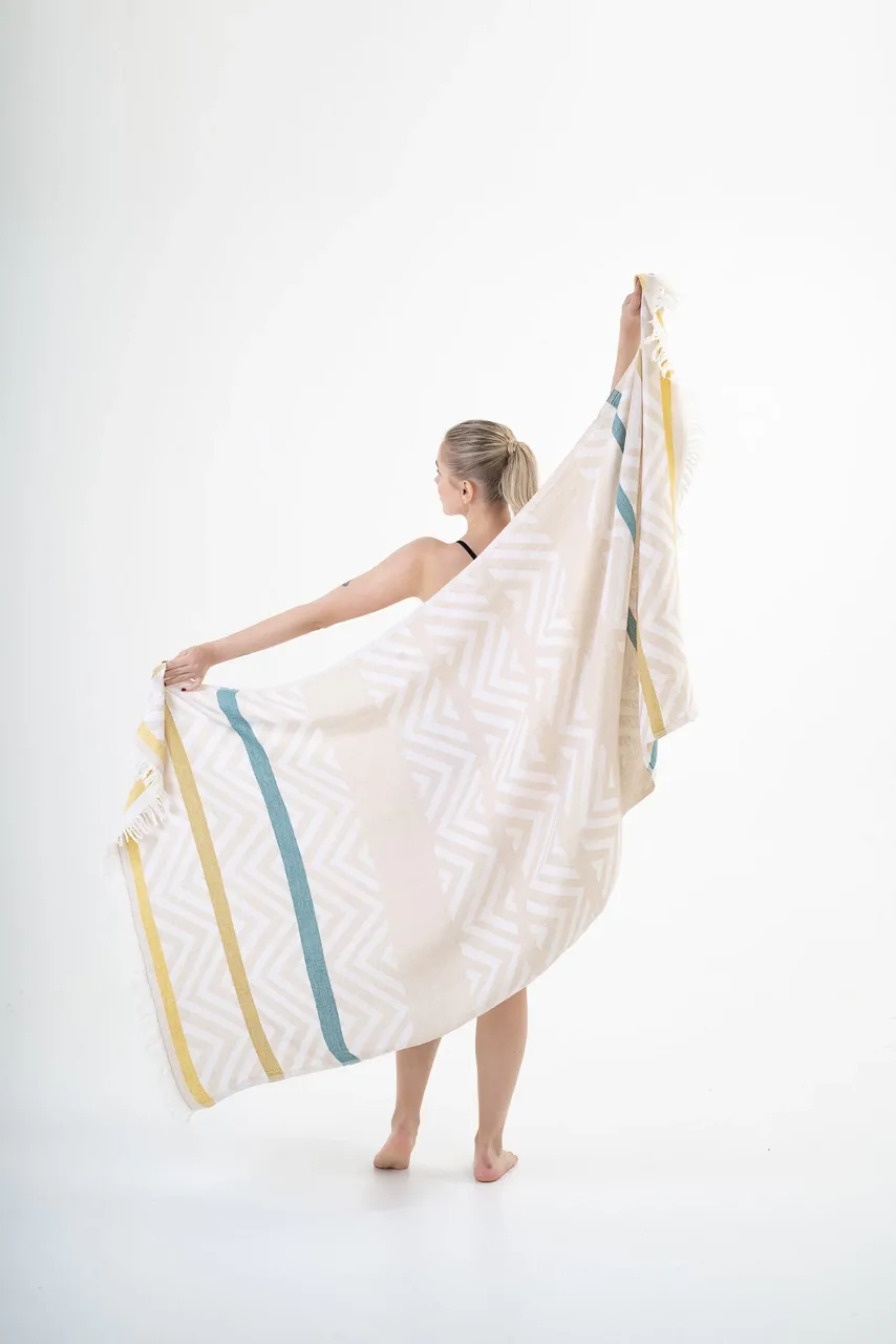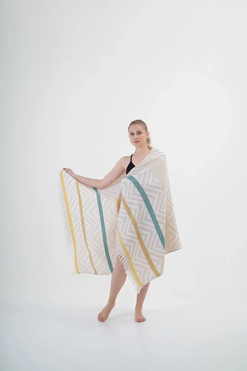 All Chaputs peshtemals signature design elements to striking with colors that will captivate.Designed and and produced in Turkey. All Chaputs peshtemals  are made by Organic cotton and have Oekotex-100 certificated.Material : 100% Turkish CottonSize : 90 x 175 cm / 35,43 x 68,89 inchWeight : 320 gr / 0,705 ibs