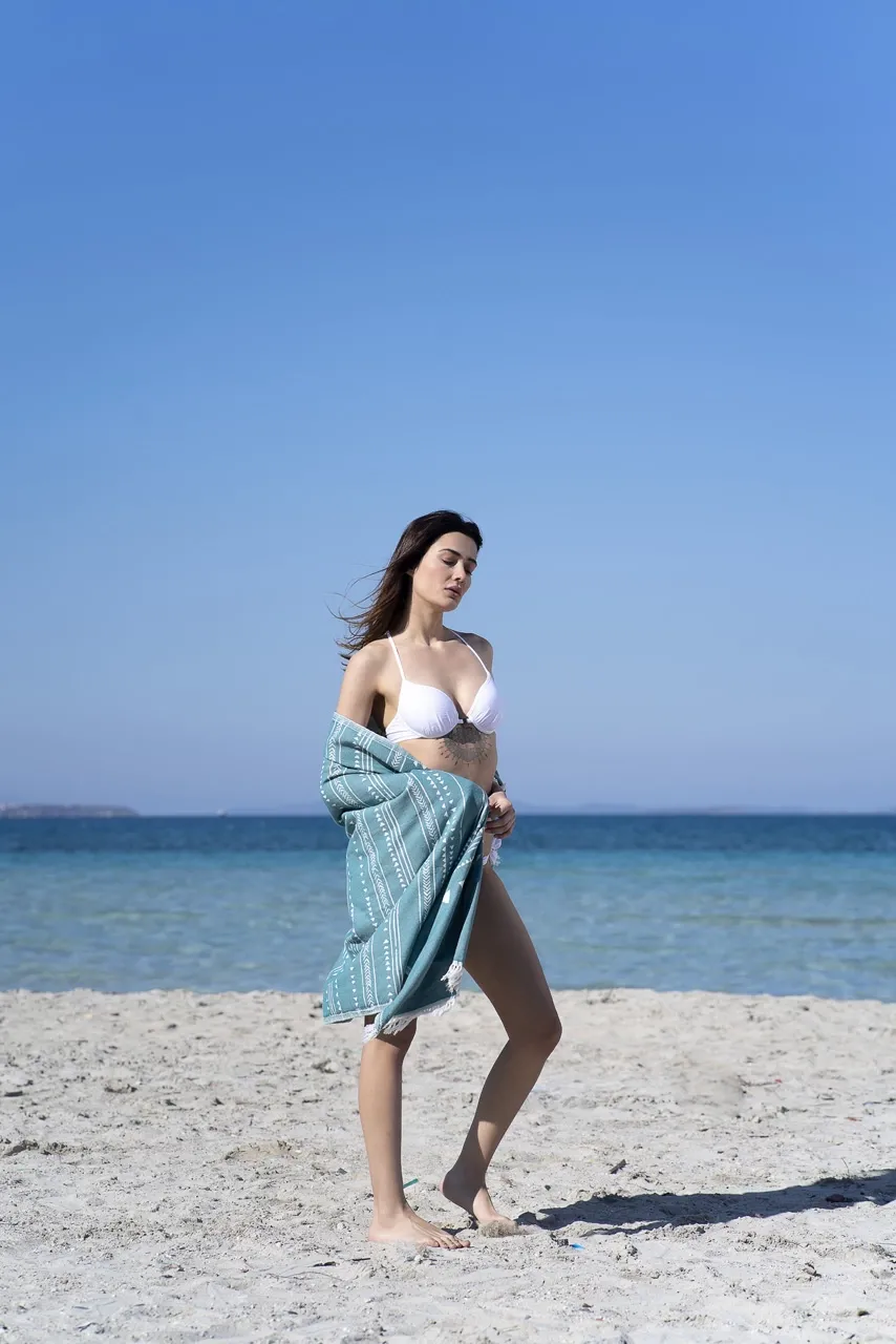 All Chaputs peshtemals signature design elements to striking with colors that will captivate.Designed and and produced in Turkey. All Chaputs peshtemals  are made by Organic cotton and have Oekotex-100 certificated.Material : 100% Turkish CottonSize : 90 x 175 cm / 35,43 x 68,89 inchWeight : 450 gr / 0,992 ibs