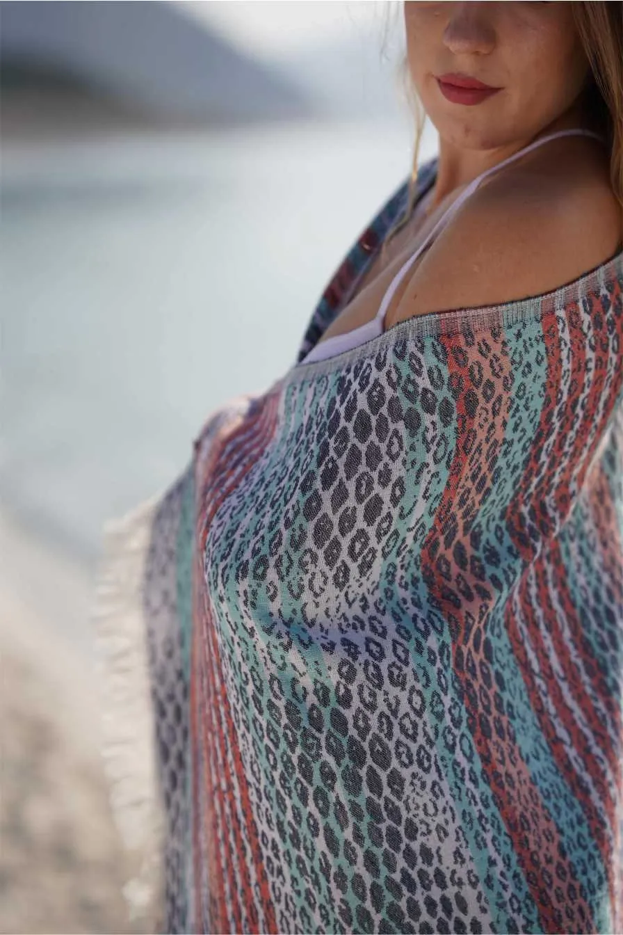 All Chaputs peshtemals signature design elements to striking with colors that will captivate.Designed and and produced in Turkey. All Chaputs peshtemals  are made by Organic cotton and have Oekotex-100 certificated.Material : 100% Turkish CottonSize : 90 x 175 cm / 35,43 x 68,89 inchWeight : 295 gr / 0,65 ibs