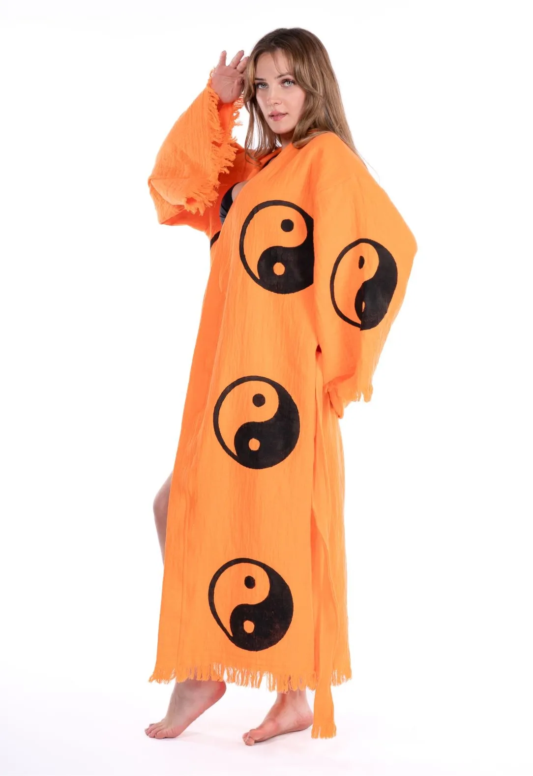 Sarasvati Orange Wooden Printed Bathrobe
