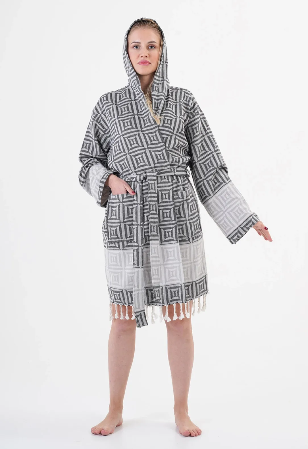 All Chaputs bathrobes signature design elements to striking with colors that will captivate.Designed and and produced in Turkey. All Chaputs bathrobes are made by Organic cotton and have Oekotex-100 certificated.Material : 100% Turkish CottonHANDLOOMED