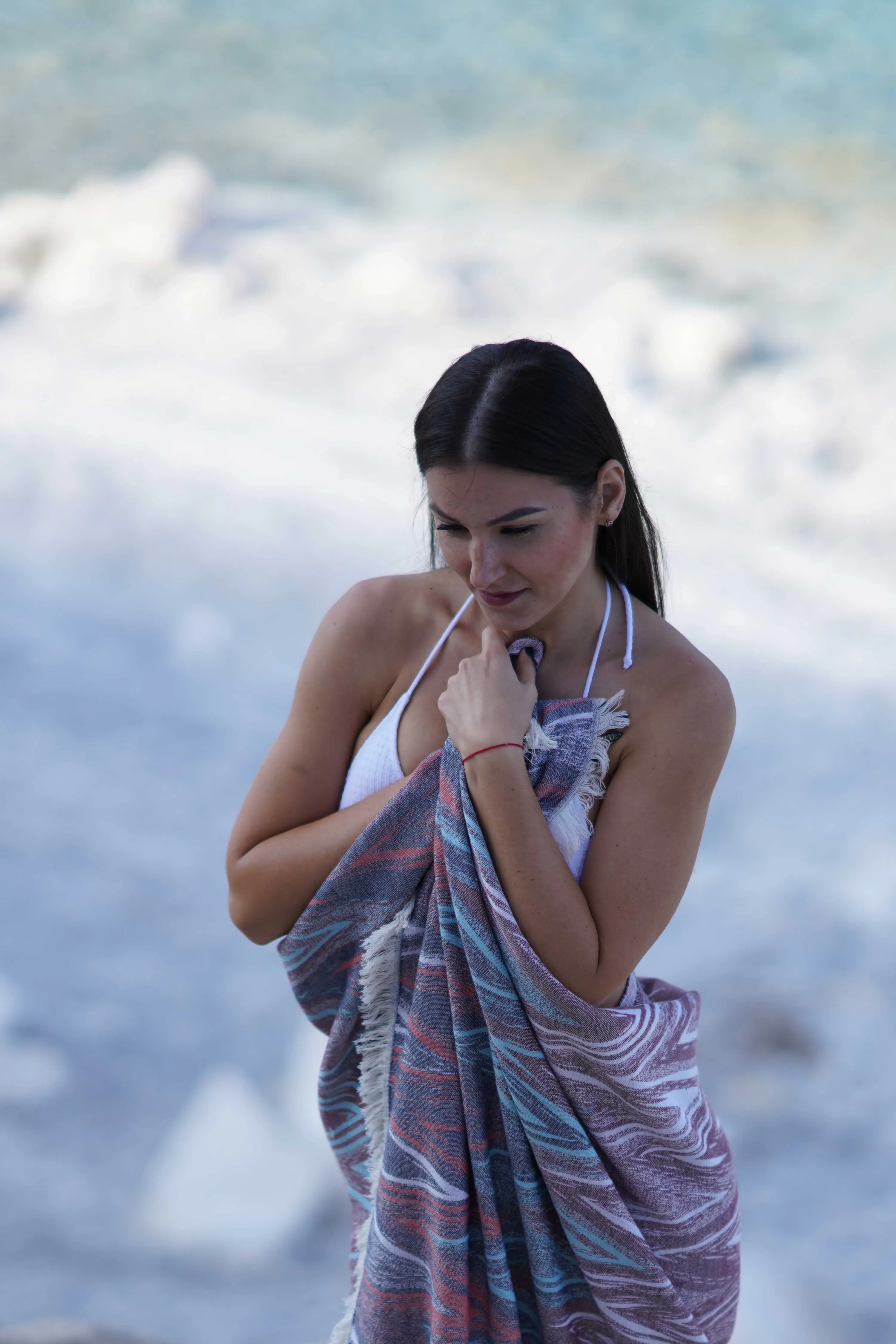 All Chaputs peshtemals signature design elements to striking with colors that will captivate.Designed and and produced in Turkey. All Chaputs peshtemals  are made by Organic cotton and have Oekotex-100 certificated.Material : 100% Turkish CottonSize : 90 x 175 cm / 35,43 x 68,89 inchWeight : 445 gr / 0,98 ibs