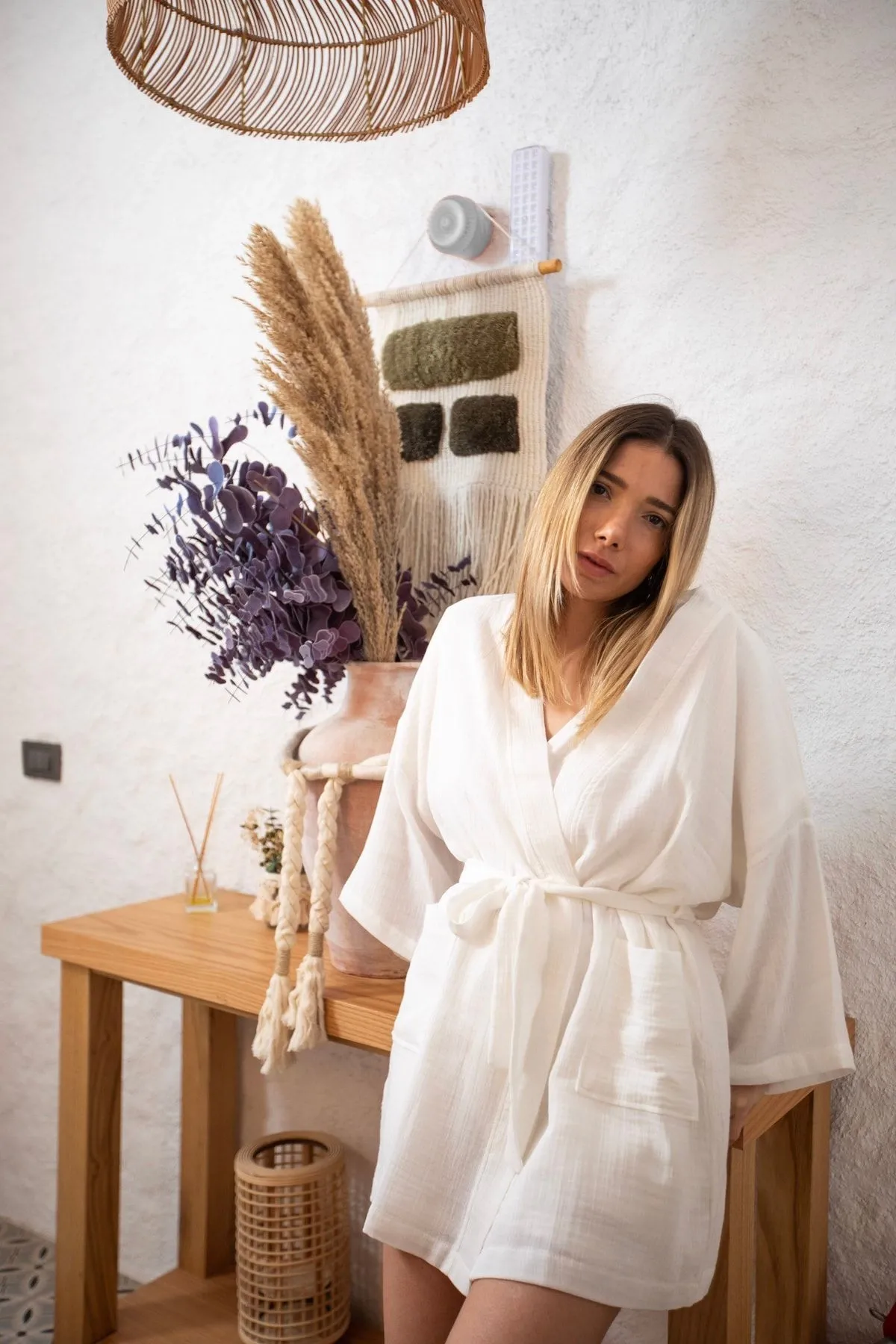 Upgrade your wardrobe with the Muse Muslin White Kimono from Atelier Dharma. Made from high-quality cotton muslin fabric, this kimono is not only stylish but also incredibly soft and comfortable to wear. Perfect for lounging at home or dressing up for a casual outing, this versatile piece will quickly become a favorite in your collection.