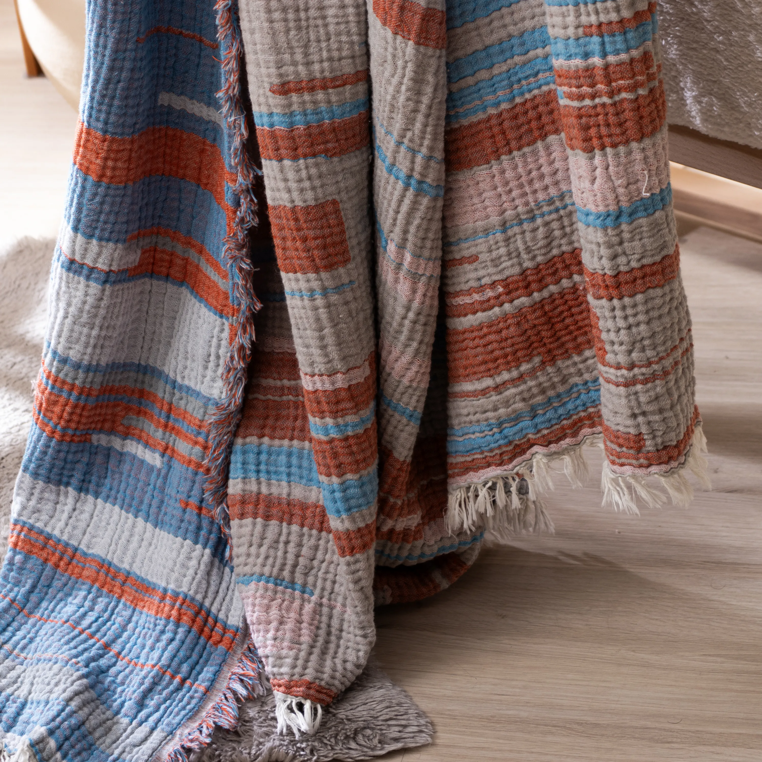 Crafted from high-quality cotton fabric, this bedspread is breathable and suitable for year-round use. Its soft texture is gentle on the skin, while the natural cotton material helps regulate temperature, providing a comfortable and healthy sleep environment.