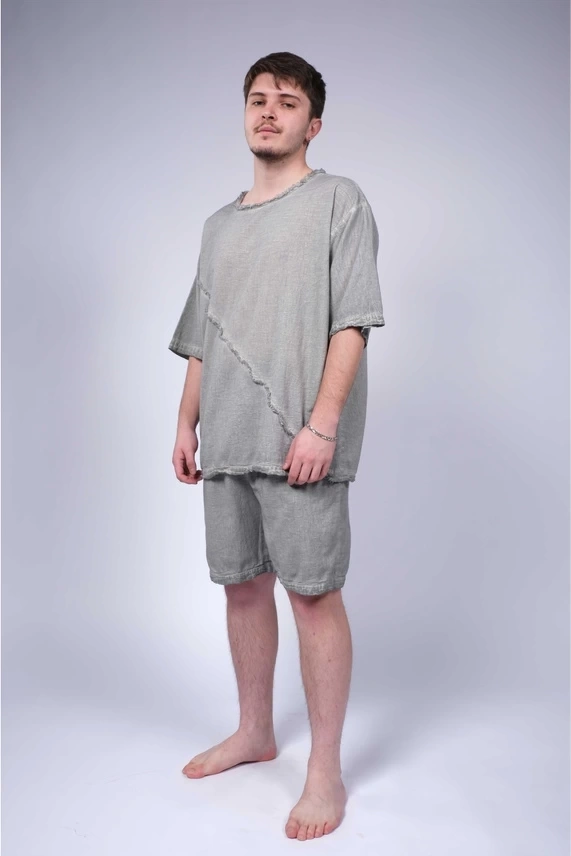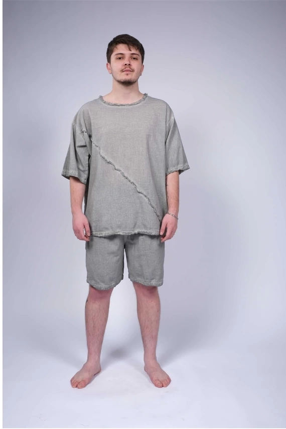 Linen Erkek T-shirt Gri - WHT16