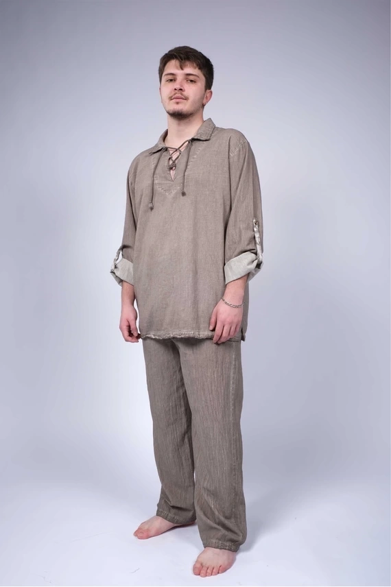 Ateiler Chaputs Keten Haki Bağcıklı Gömlek
