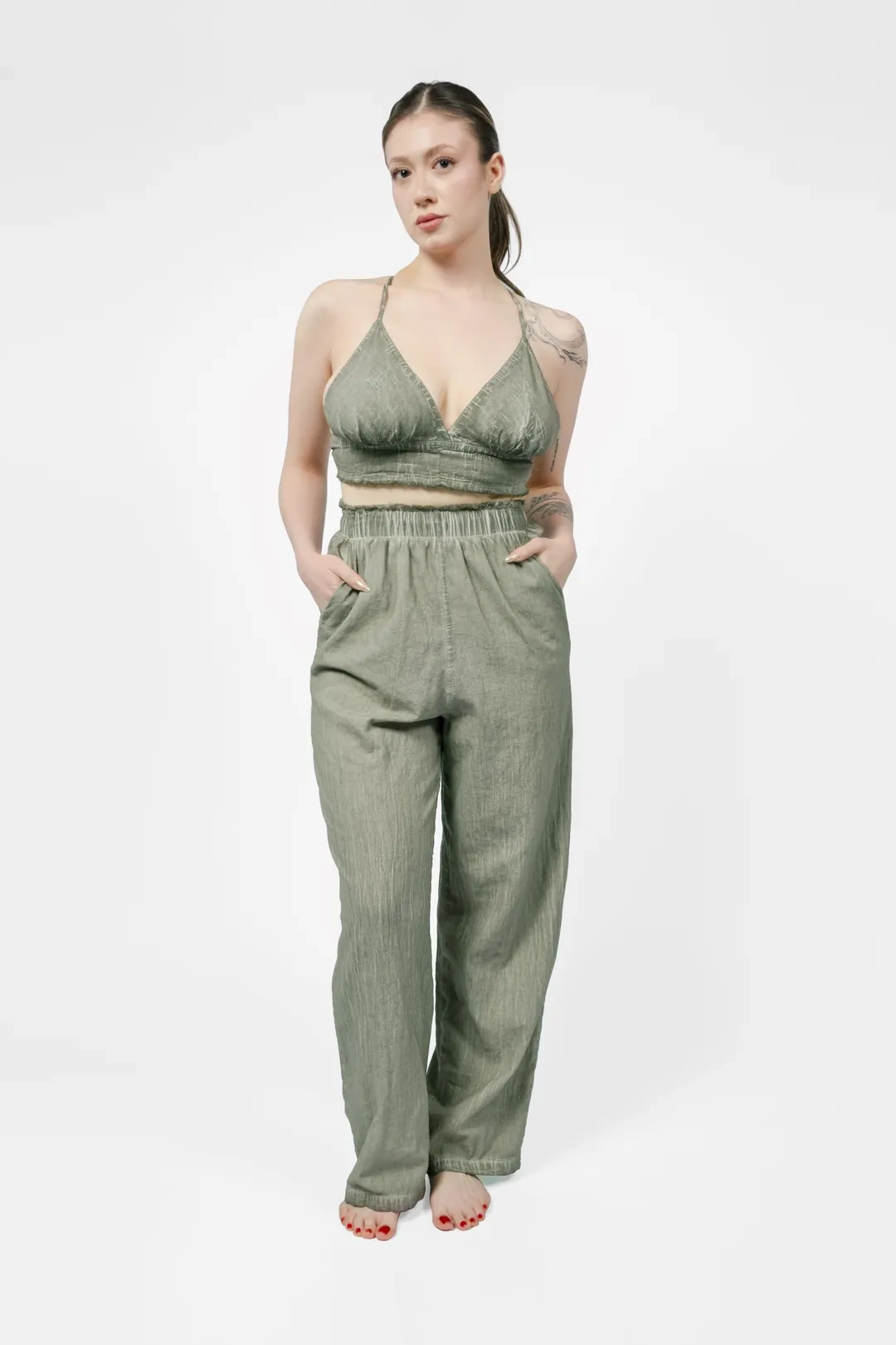 Ateiler Chaputs Keten Lira Yeşil Pantolon One-Size