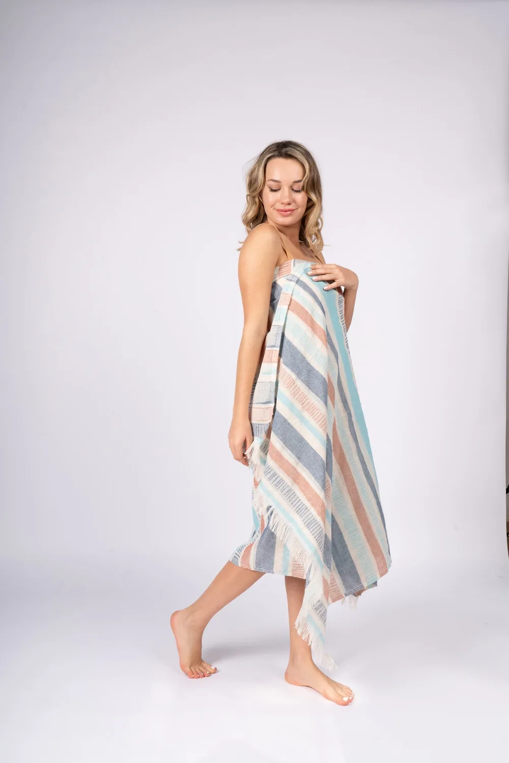 All Chaputs peshtemals signature design elements to striking with colors that will captivate.Designed and and produced in Turkey. All Chaputs peshtemals  are made by Organic cotton and have Oekotex-100 certificated.Material : 100% Turkish CottonSize : 90 x 175 cm / 35,43 x 68,89 inchWeight : 330 gr / 0,727 ibs