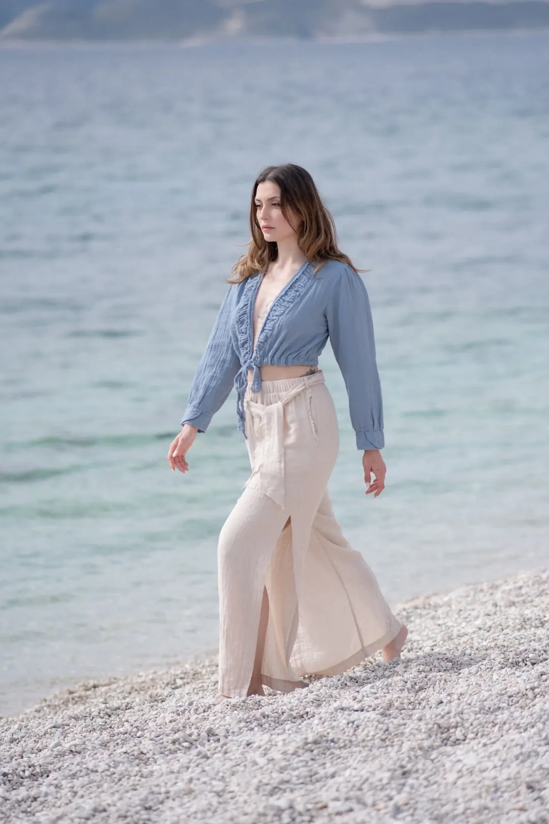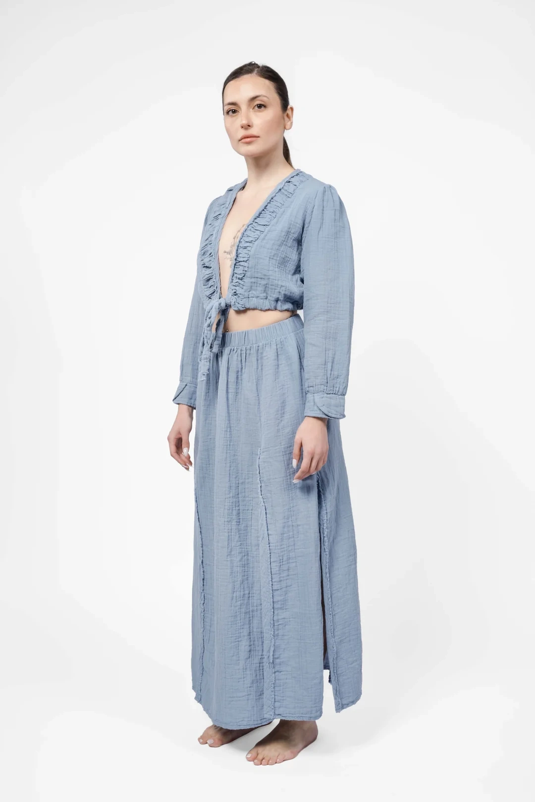 Ateiler Chaputs %100 Pamuk Müslin Mera Mavi Bluz One-Size