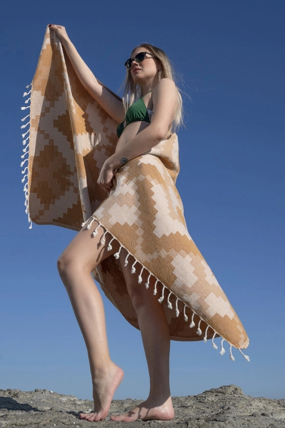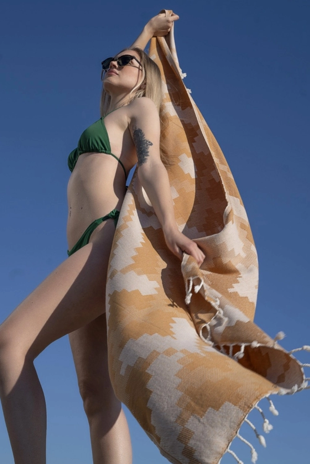 All Chaputs peshtemals signature design elements to striking with colors that will captivate. Designed and produced in Turkey. All Chaputs peshtemals are made of Organic cotton and have Oekotex-100 certification. Material: 100% Turkish Cotton Size: 90 x 175 cm / 35.43 x 68.89 inches Weight: 360 gr / 0.79 lbs