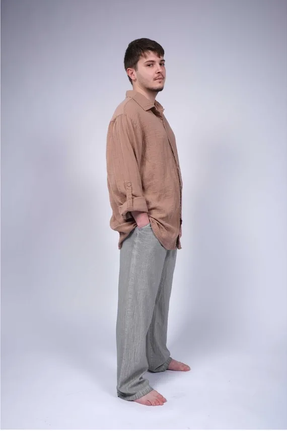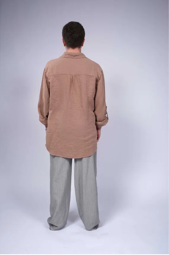 Muslin Men's Shirt Brown- WHT3