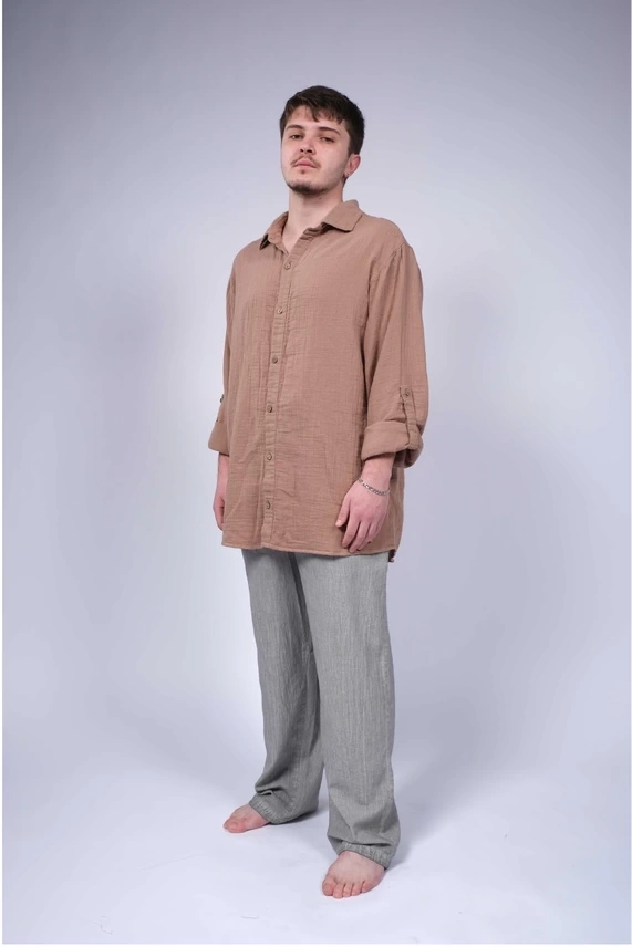 Ateiler Chaputs %100 Pamuk Müslin Orge Kahve Gömlek One-Size