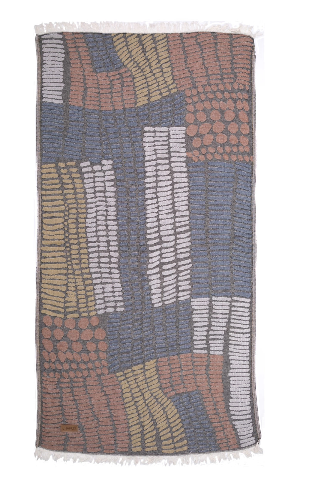 Tüm Chaputs peshtemalleri, çarpıcı renkleriyle dikkat çekecek olan imza tasarım unsurlarına sahiptir. Türkiye'de tasarlanmış ve üretilmiştir. Tüm Chaputs peshtemalleri organik pamuktan yapılmış olup Oeko-Tex-100 sertifikalıdır. Malzeme: %100 Türk Pamuğu Boyut: 90 x 175 cm Ağırlık: 450 gr