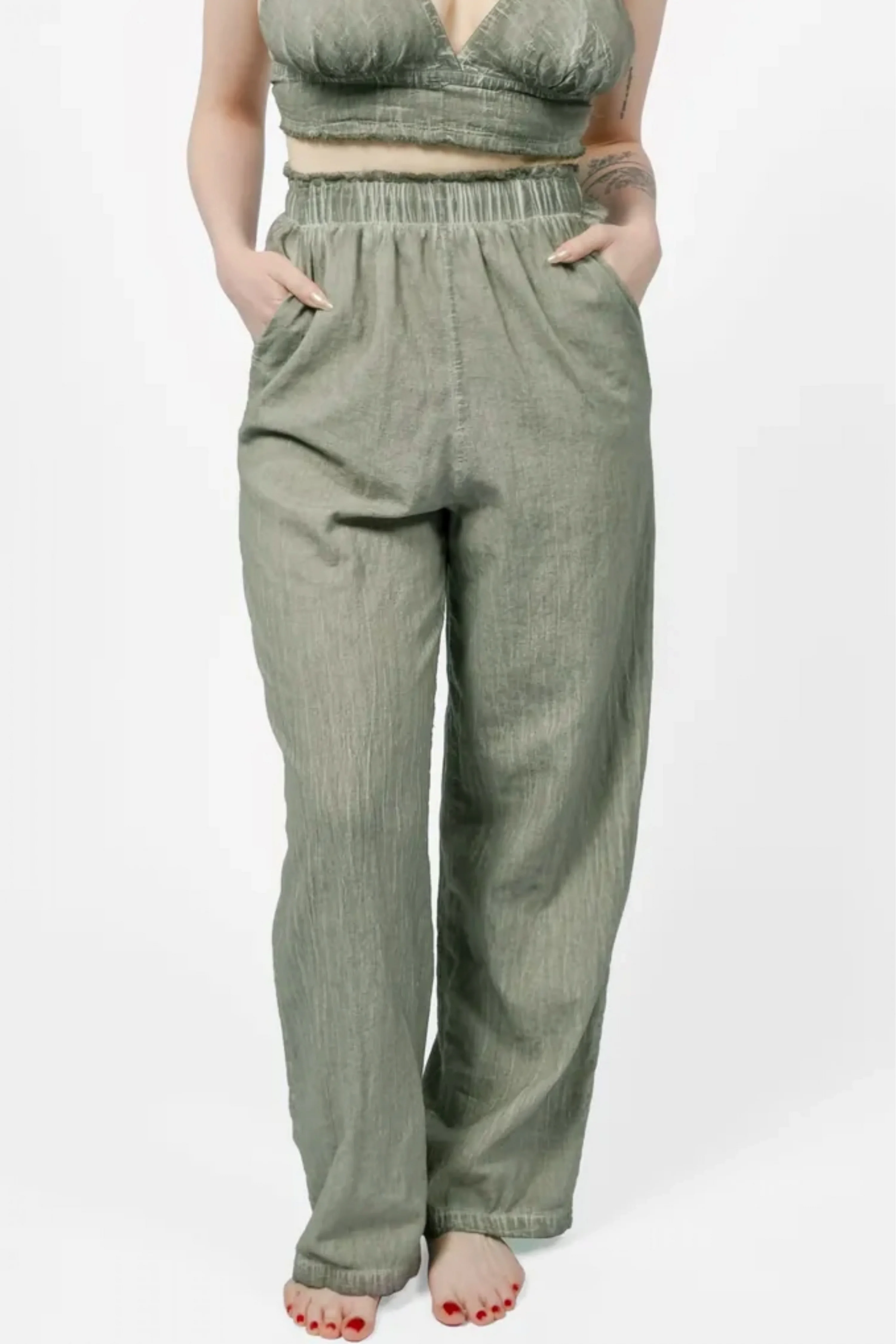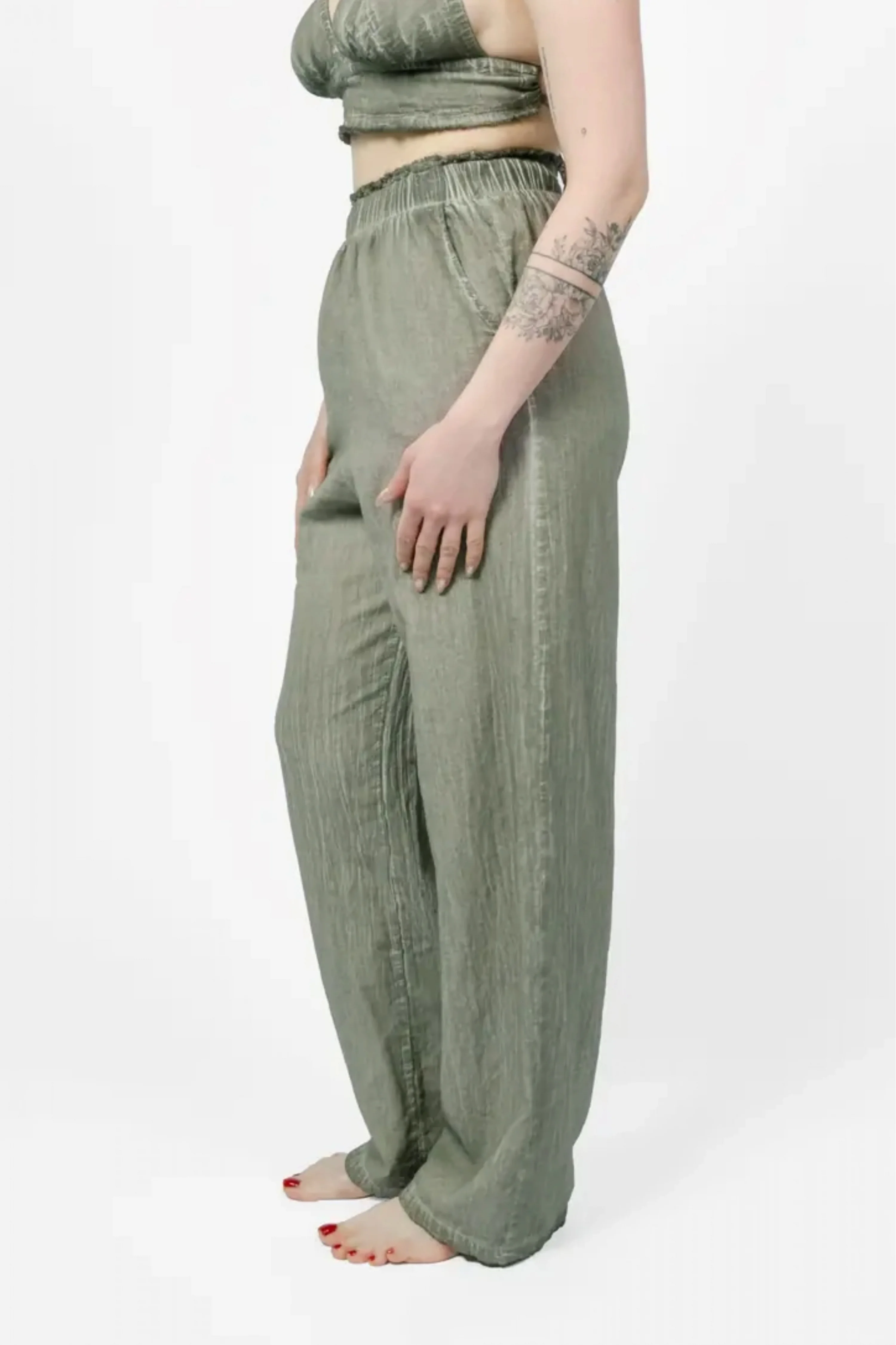 Lyra Green Linen Trouser