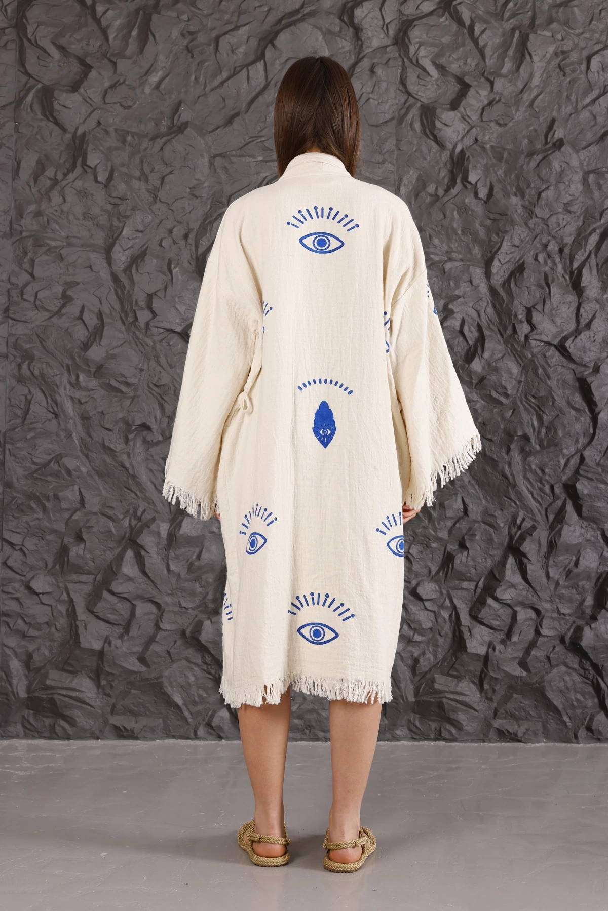 Saf Göz Ahşap Baskılı Bornoz