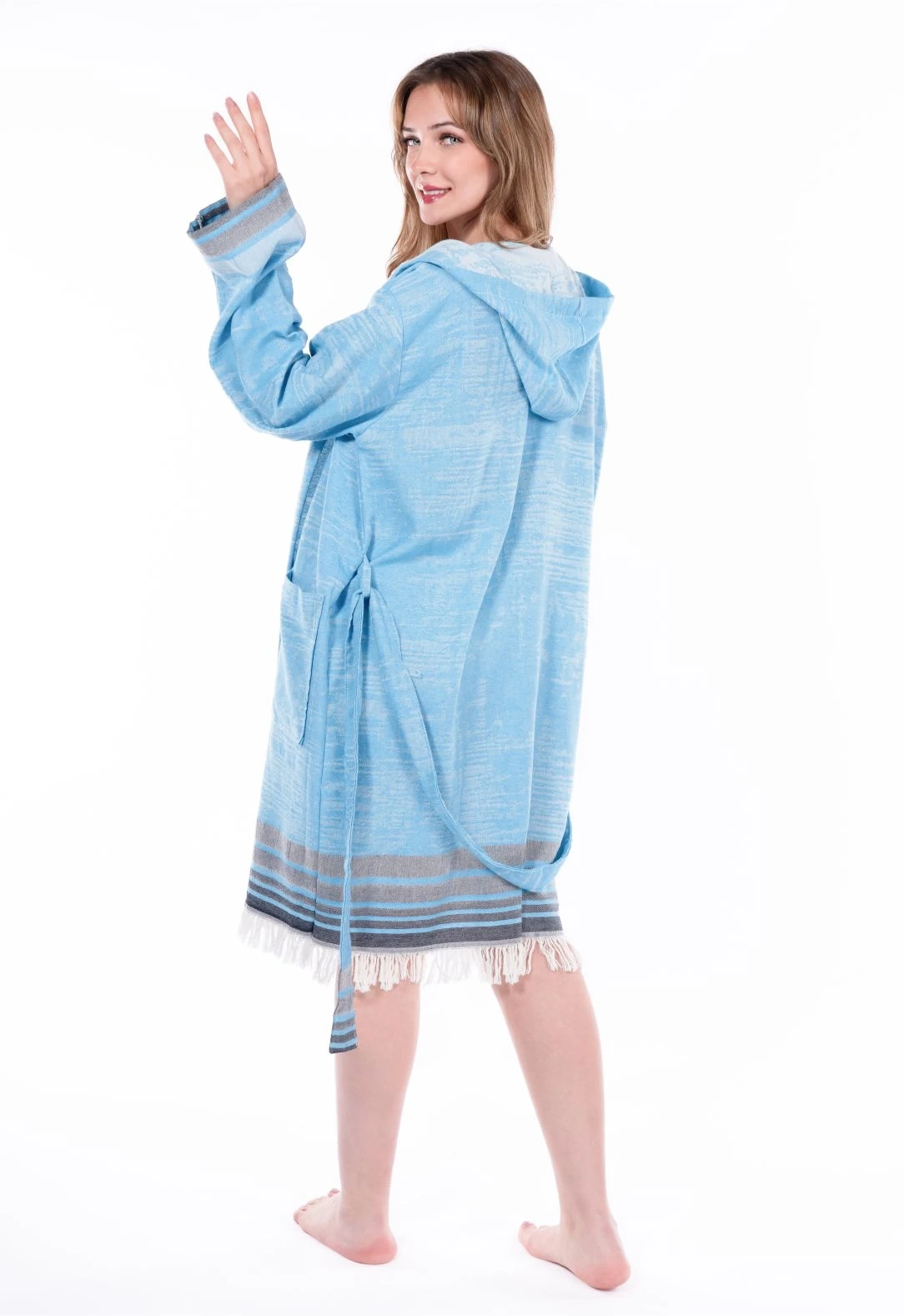 All Saudade bathrobes signature design elements to striking with colors that will captivate.Designed and and produced in Turkey. All Saudade bathrobes are made by sustainable cotton and have Oekotex-100 certificated.Material : Sustainable Cotton