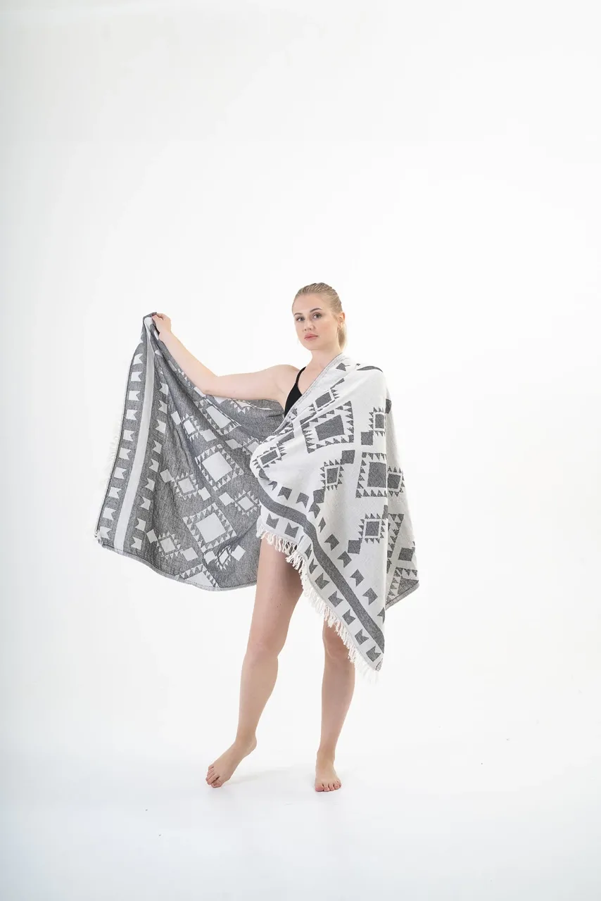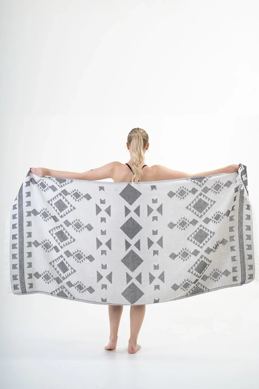 All Chaputs peshtemals signature design elements to striking with colors that will captivate.Designed and and produced in Turkey. All Chaputs peshtemals  are made by Organic cotton and have Oekotex-100 certificated.Material : 100% Turkish CottonSize : 90 x 175 cm / 35,43 x 68,89 inchWeight : 300 gr / 0,661 ibs