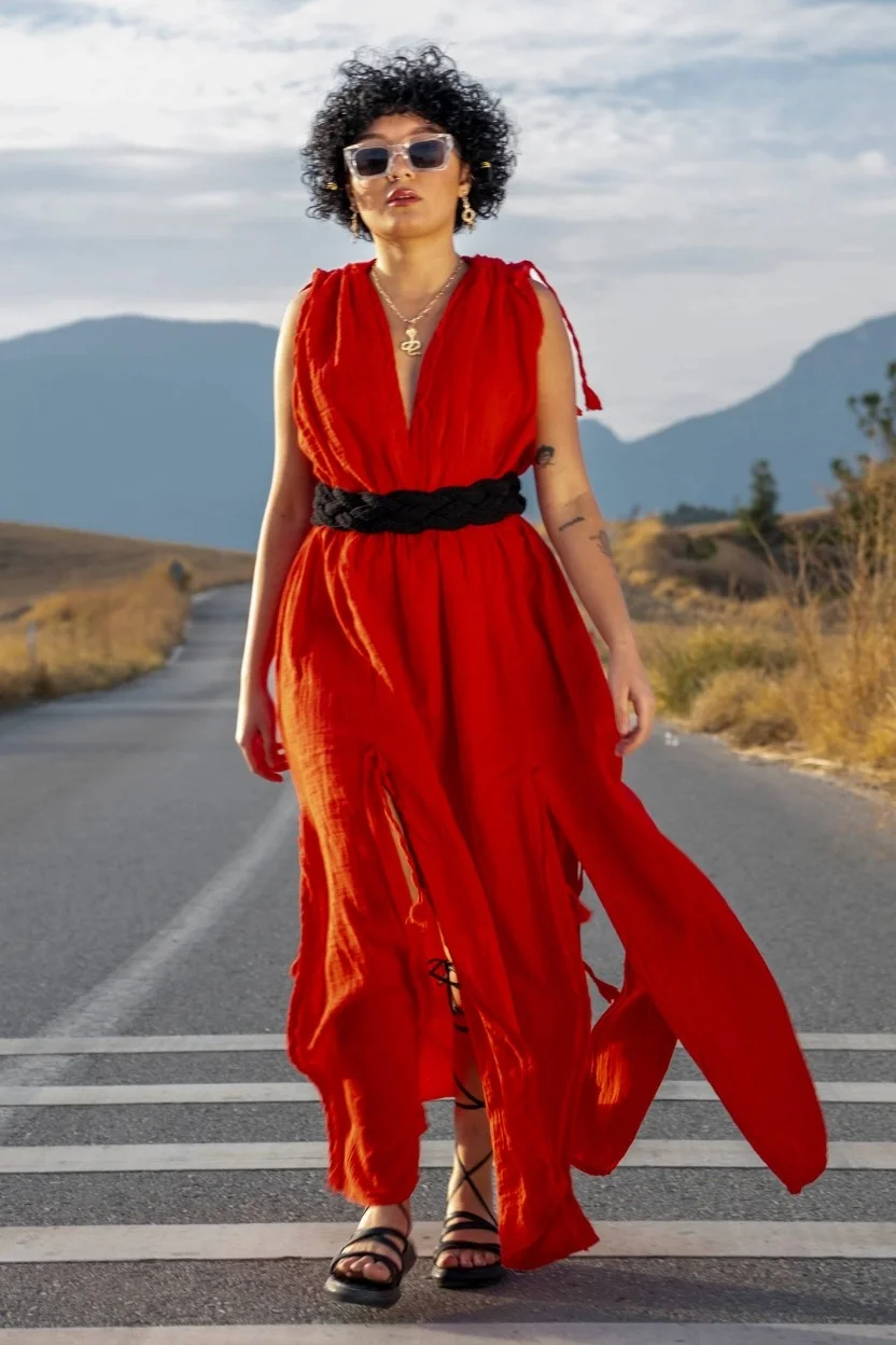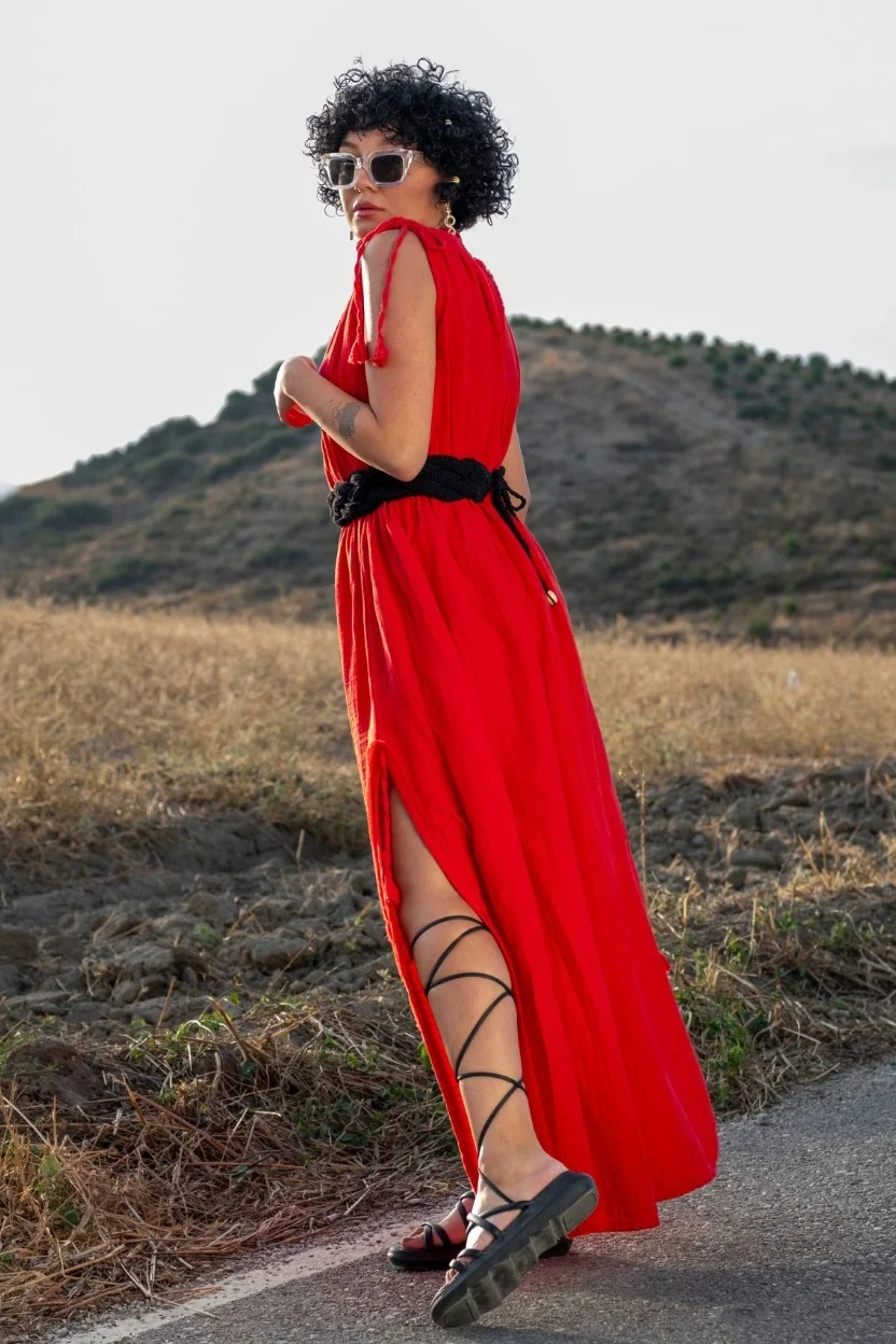 Stella Red Muslin Dress