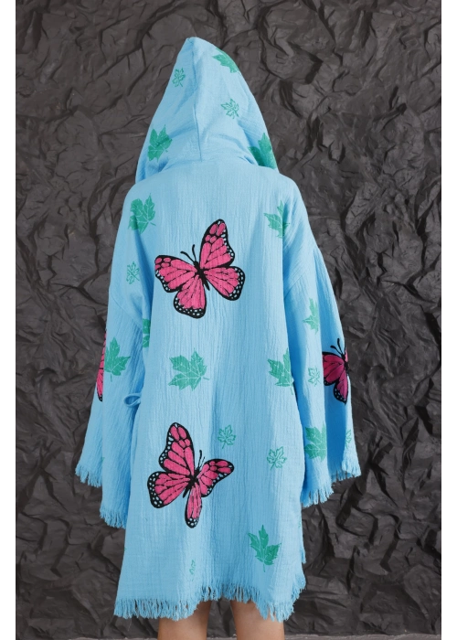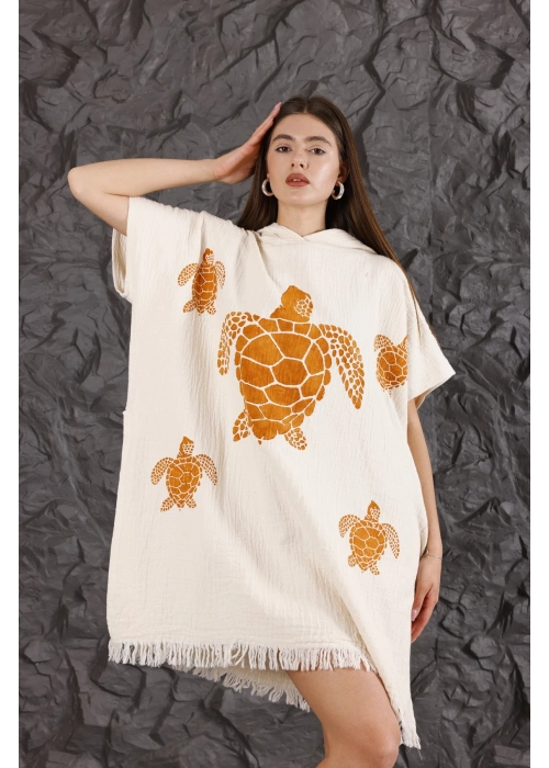 Blue Turtle Ahşap Baskılı Krem Bornoz