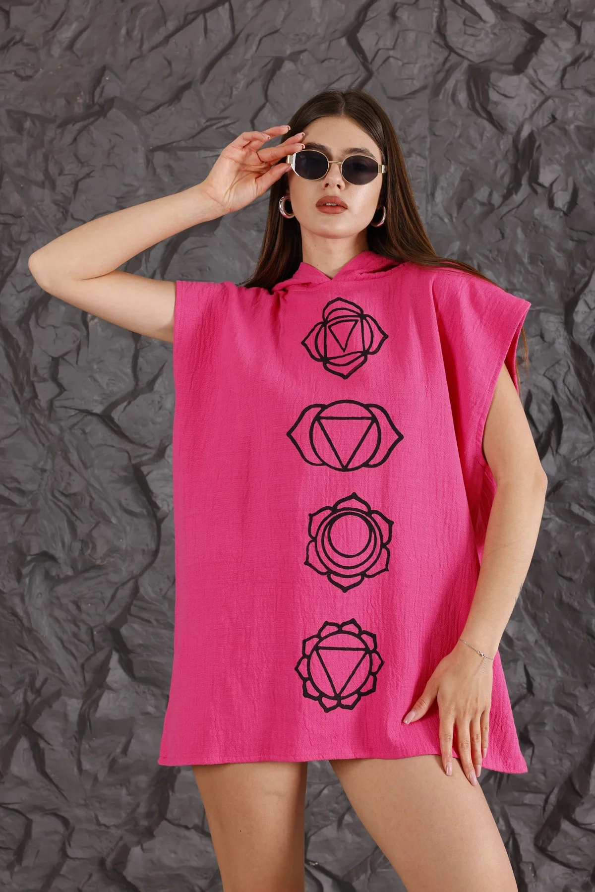 Triangle Wooden Printed Pink Poncho